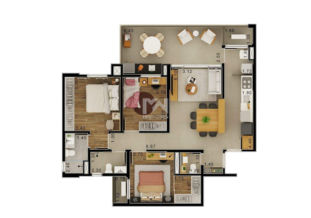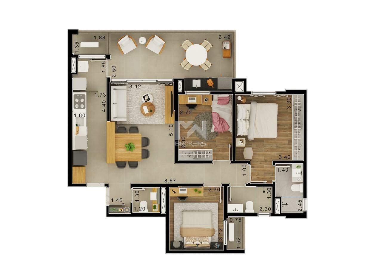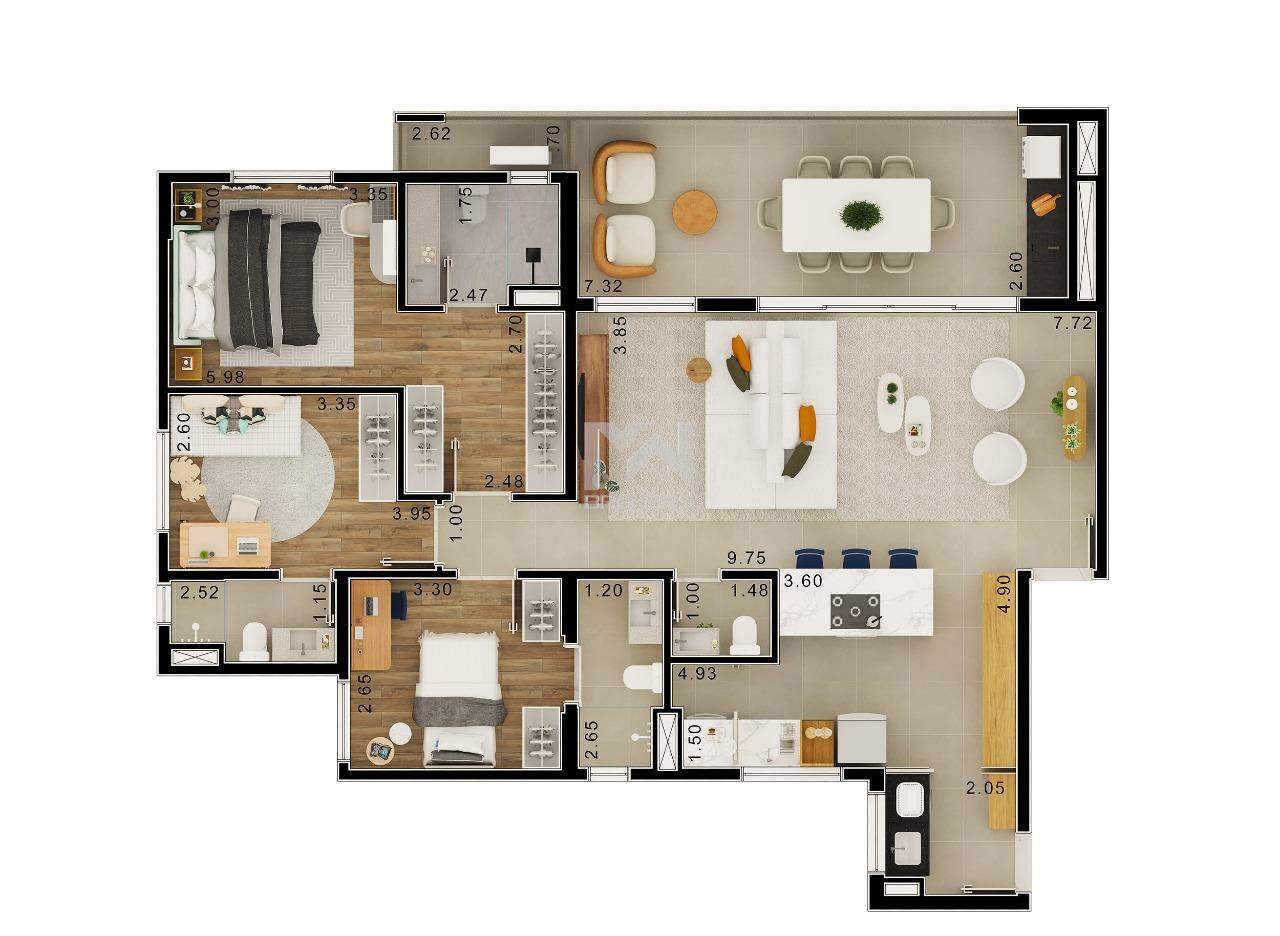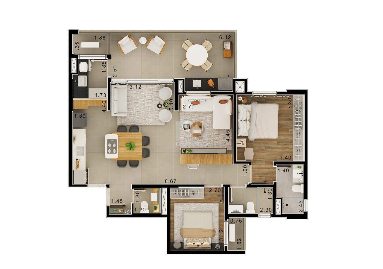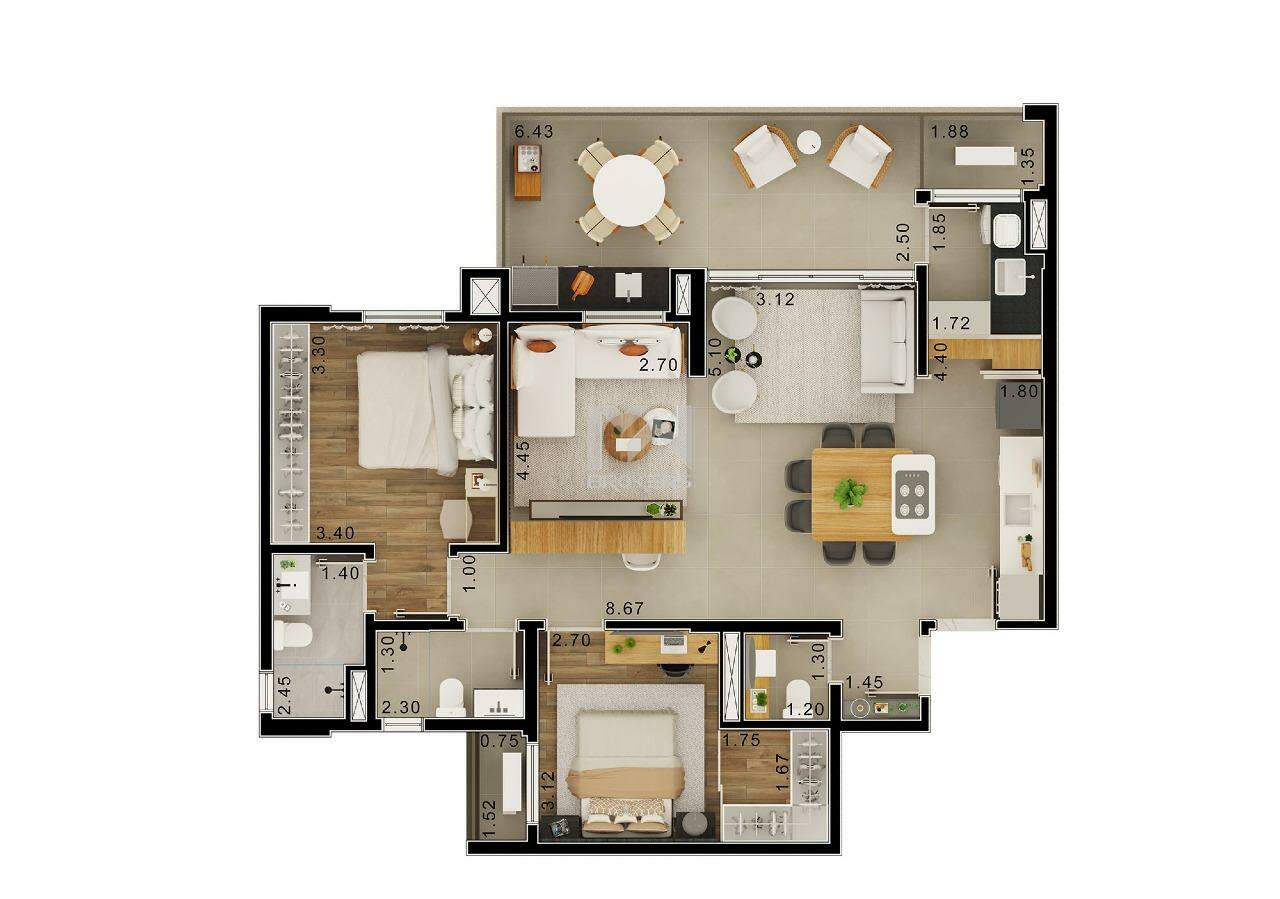 Condomínio fechado em zona nobre da cidade de Valinhos, composto de 3 torres, com delivery room para encomendas, lounge de convivência, churrasqueiras, piscinas infantil e adulto, brinquedoteca, salão de festas, fogo de chão, sala spa/massagem, coworking, sauna, piscina aquecida e coberta com raia de 25m, sala teen com cinema, quarto de hóspedes, espaço fitness, espaço pet, playground, pista de caminhada no bosque e praça.