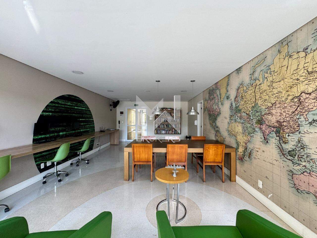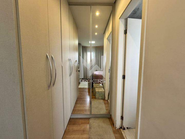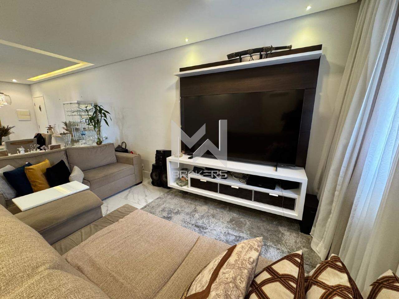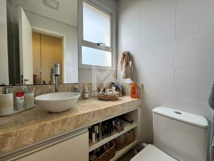 Na área íntima permanece a suíte, com closet, armários planejados, banheiro com porcelanato, box blindex, pia e gabinete. O banheiro social mantém o mesmo padrão de acabamento. O imóvel ainda dispõe de lavabo e 2 vagas cobertas.