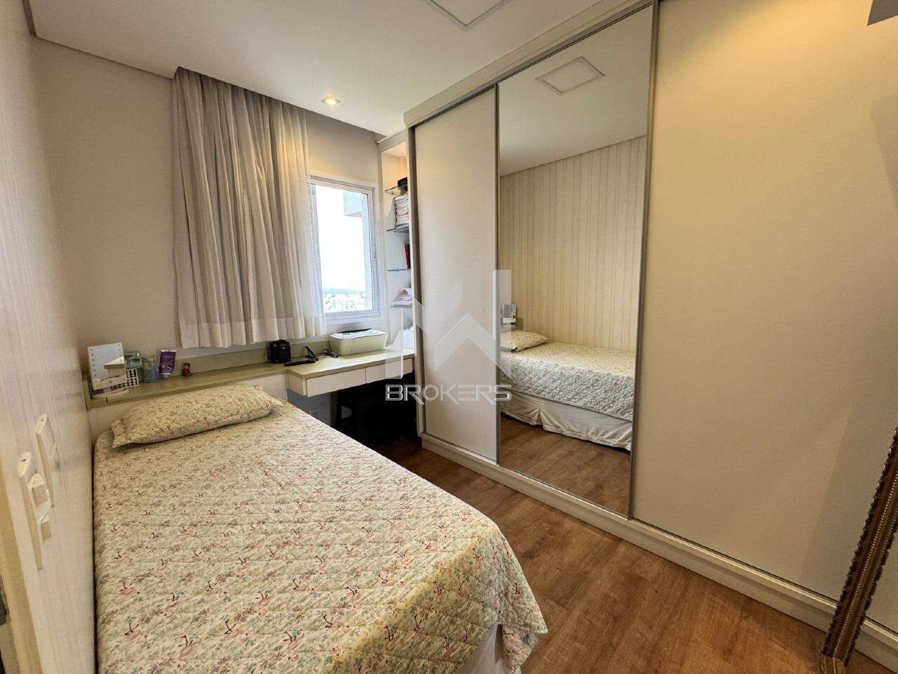 O apartamento originalmente contava com 3 dormitórios, porém um dos quartos foi integrado ao ambiente social, ampliando o living, a sala de jantar e a sala de estar, trazendo mais amplitude, conforto e funcionalidade ao espaço. O imóvel apresenta acabamento moderno, com piso laminado na área íntima e porcelanato nos demais ambientes.