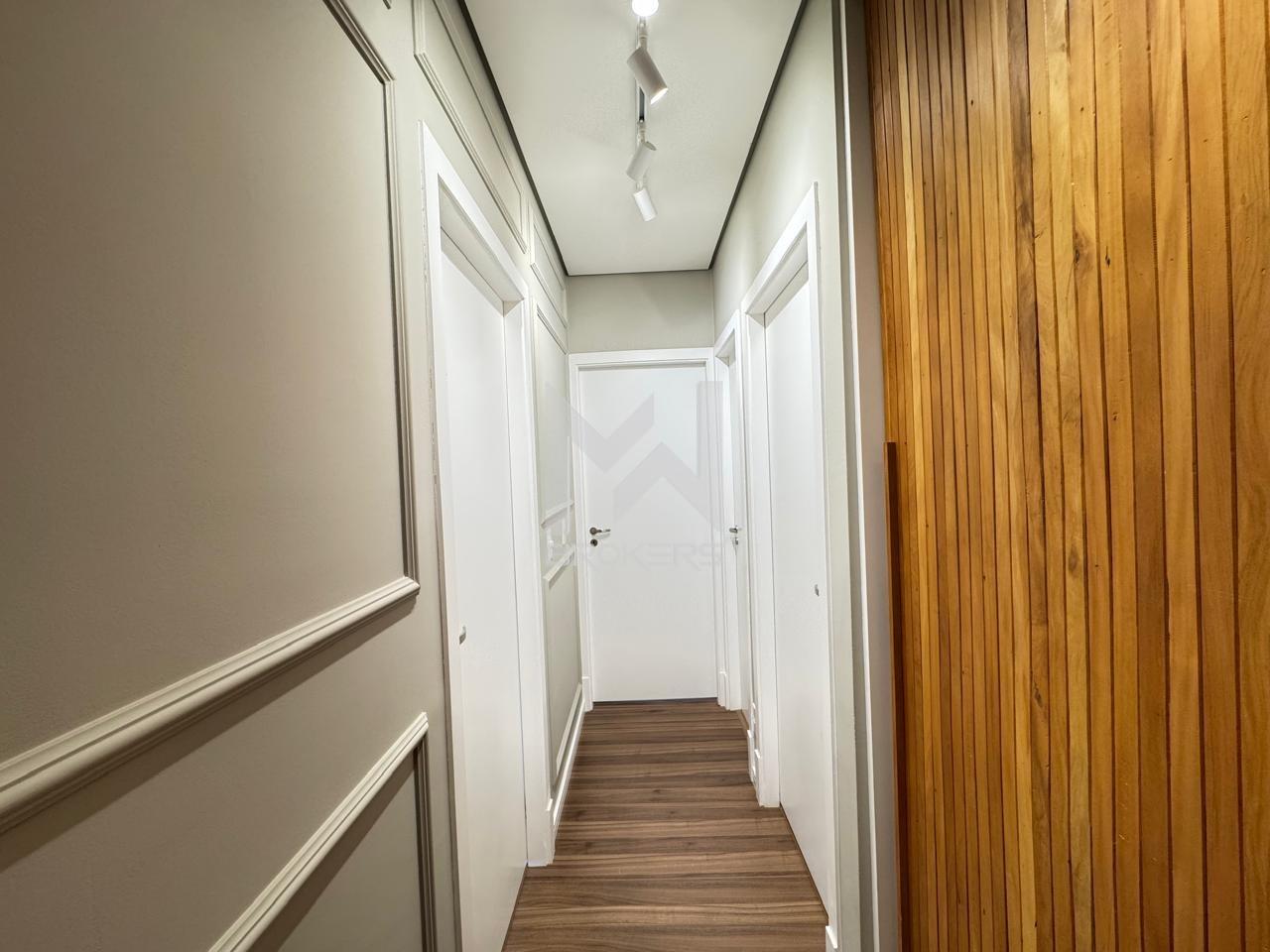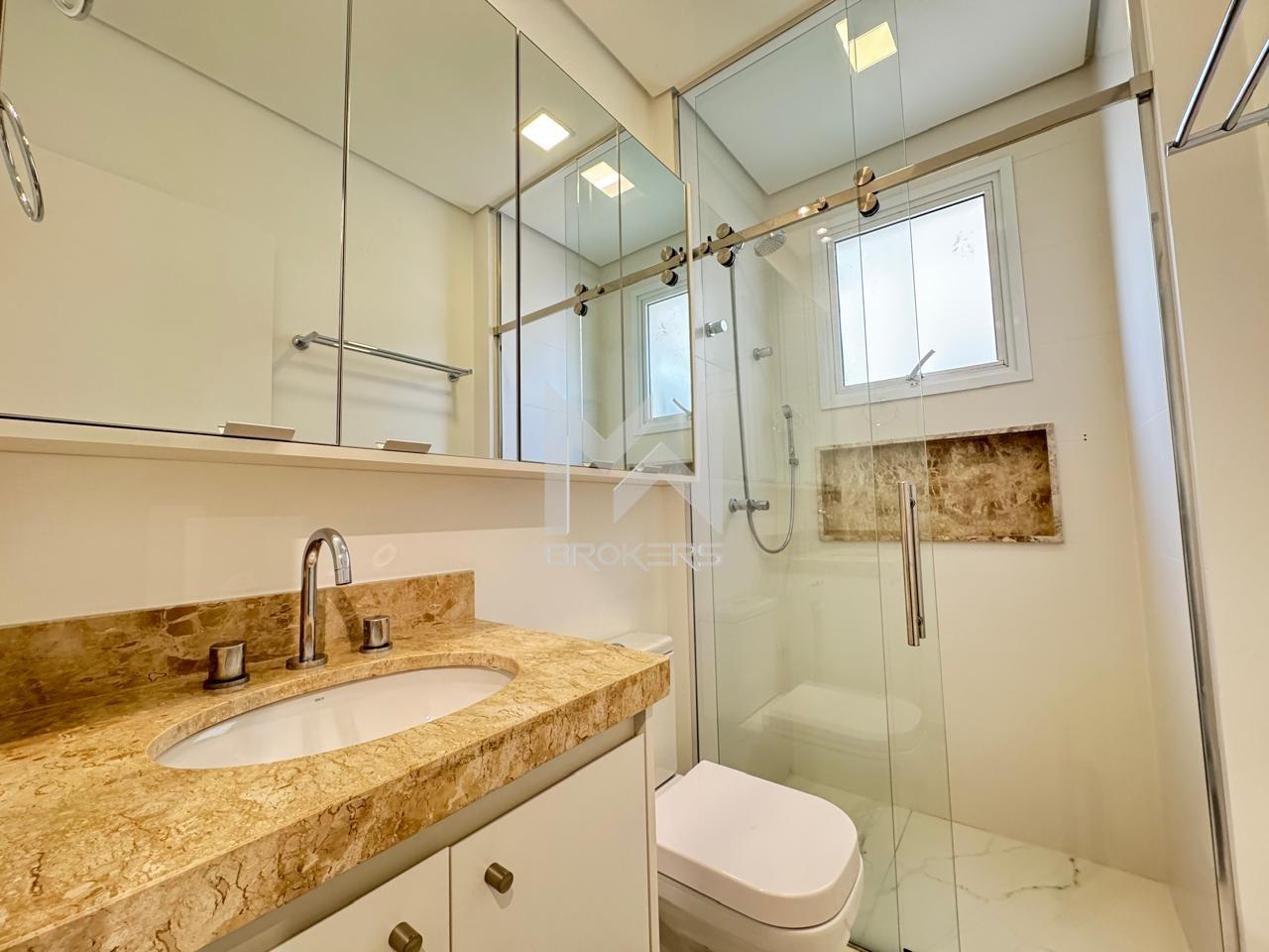 Salas de estar e de refeições integradas, lavabo, cozinha planejada, varanda gourmet e área íntima com 03 dormitórios, sendo 01 suíte com armários.