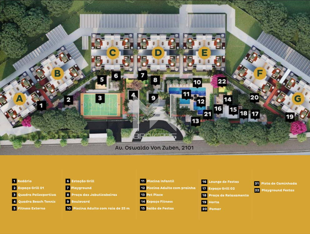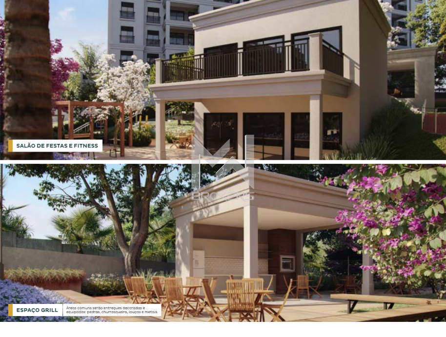 O condomínio conta com piscinas, quadra poliesportiva, playground, espaço grill, academia ao ar livre, lounge e redário.