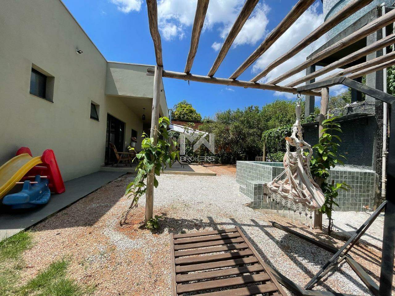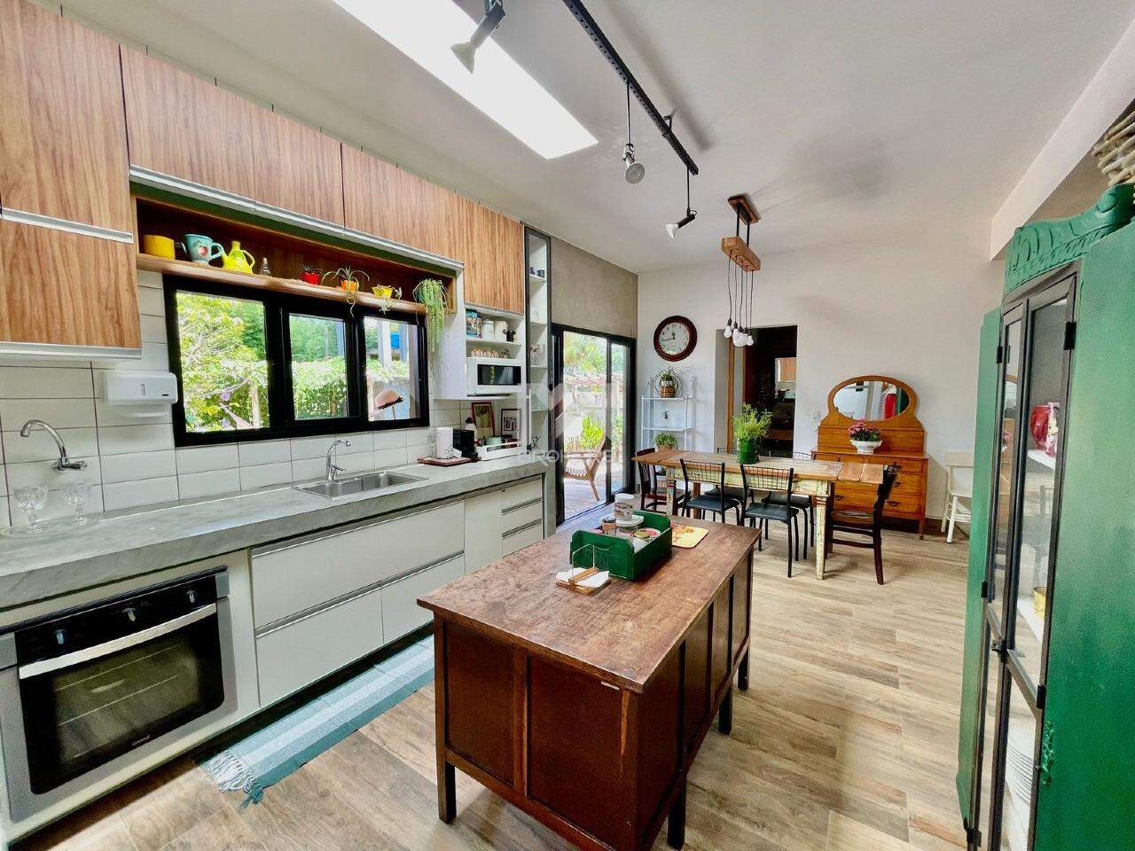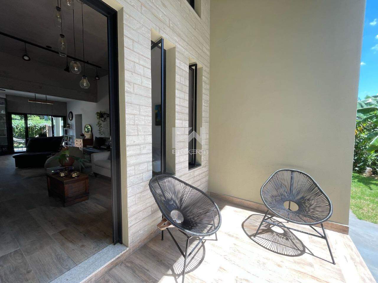 Uma casa moderna e funcional, com estilo industrial e cheia de personalidade. Conta ambientes integrados, sala de estar, sala de jantar e cozinha com moveis planejados e iluminada por grandes janelas e claraboia, com saída para a área externa com jacuzzi, área gourmet e um pomar em um terreno plano.