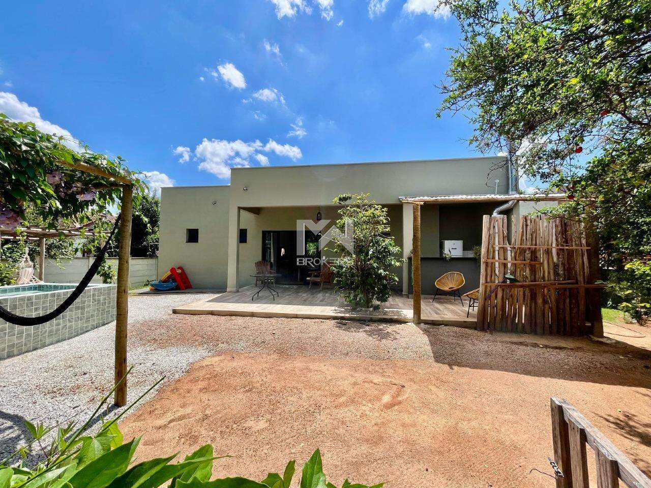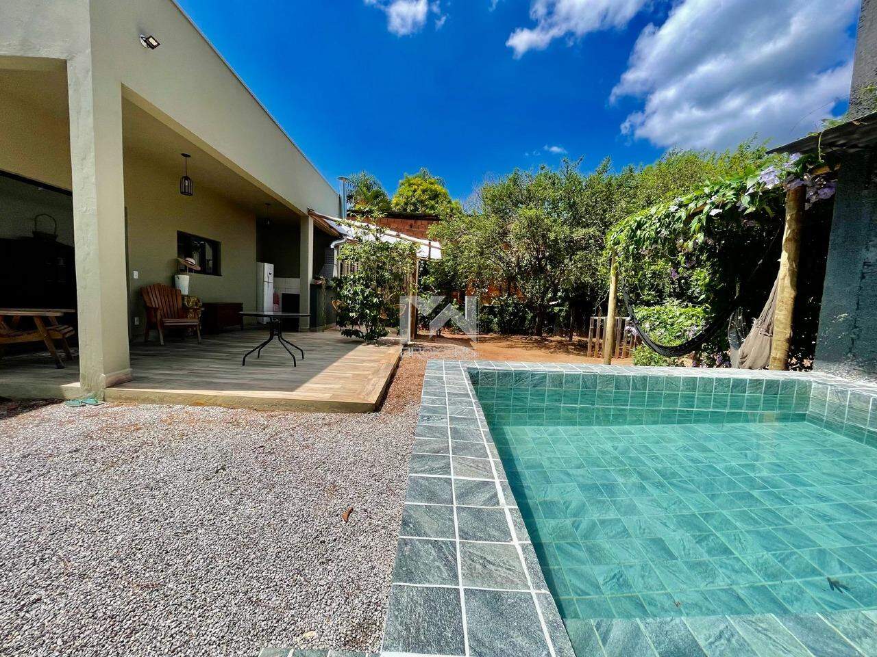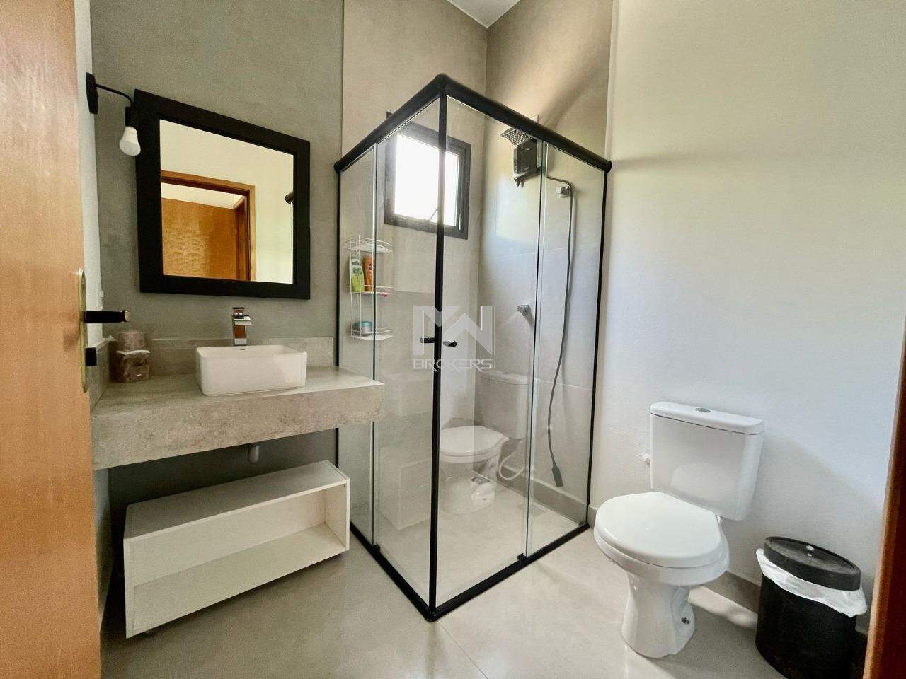 Uma casa moderna e funcional, com estilo industrial e cheia de personalidade. Conta ambientes integrados, sala de estar, sala de jantar e cozinha com moveis planejados e iluminada por grandes janelas e claraboia, com saída para a área externa com jacuzzi, área gourmet e um pomar em um terreno plano.