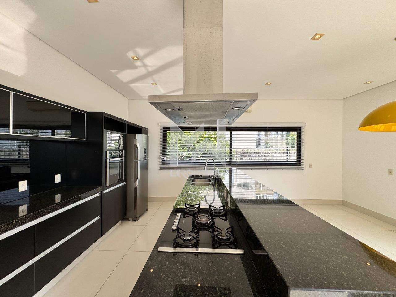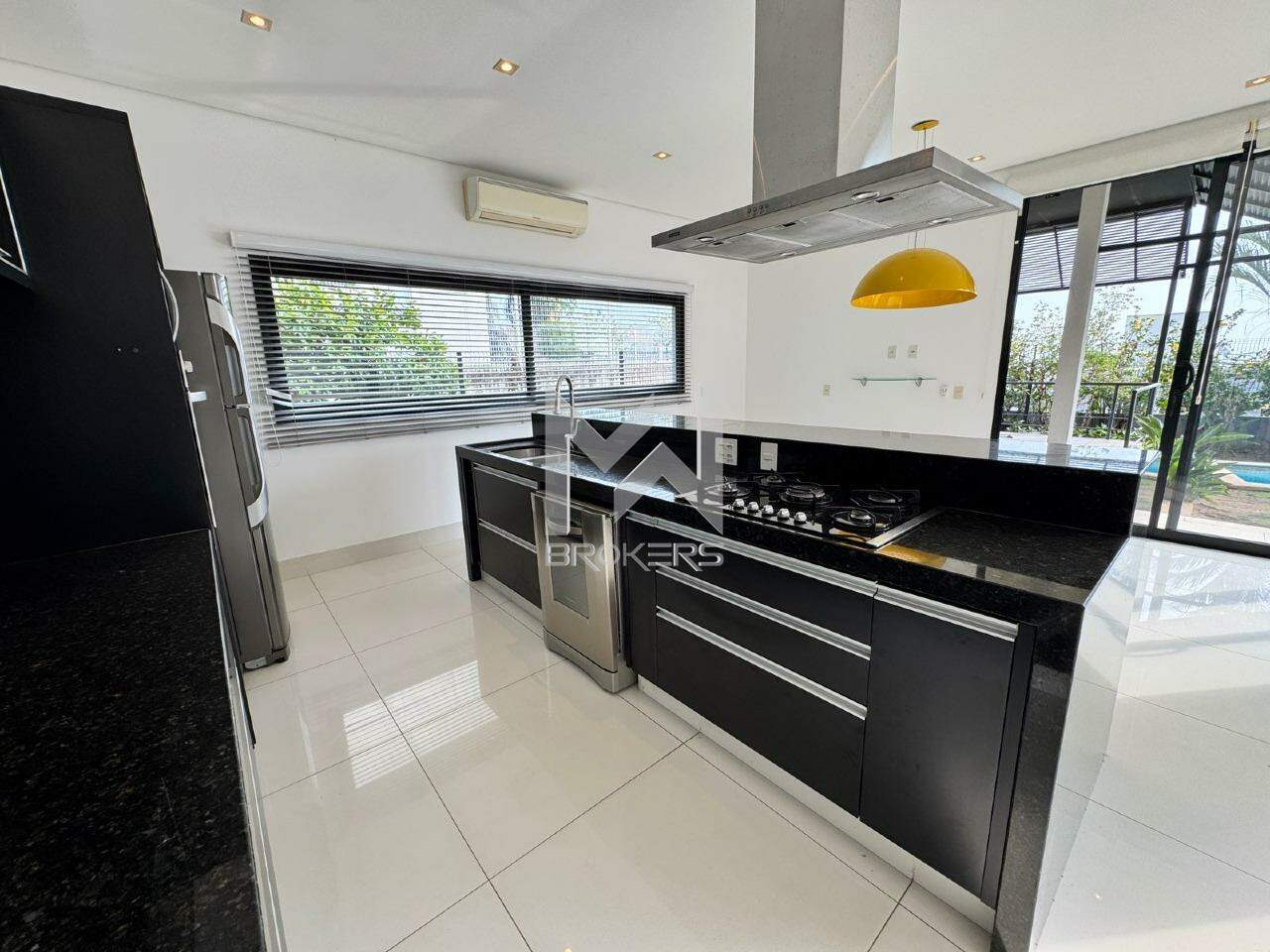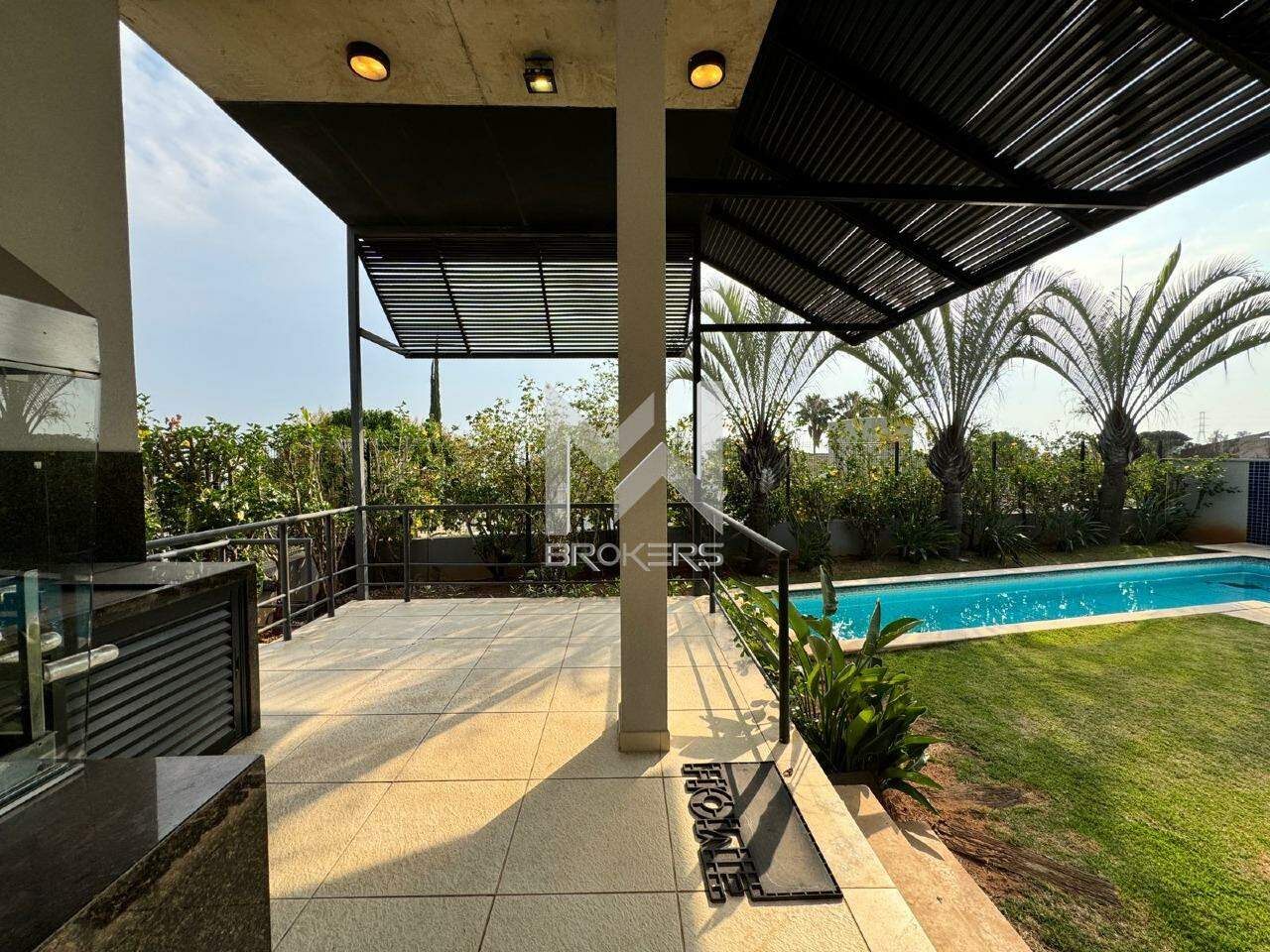 Hall de entrada, lavabo, sala de estar e de refeições integradas, escritório, sala de TV, cozinha e copa integradas à área gourmet, despensa, área de serviços com dormitório e banheiro de doméstica, depósito, quintal gramado e canil.