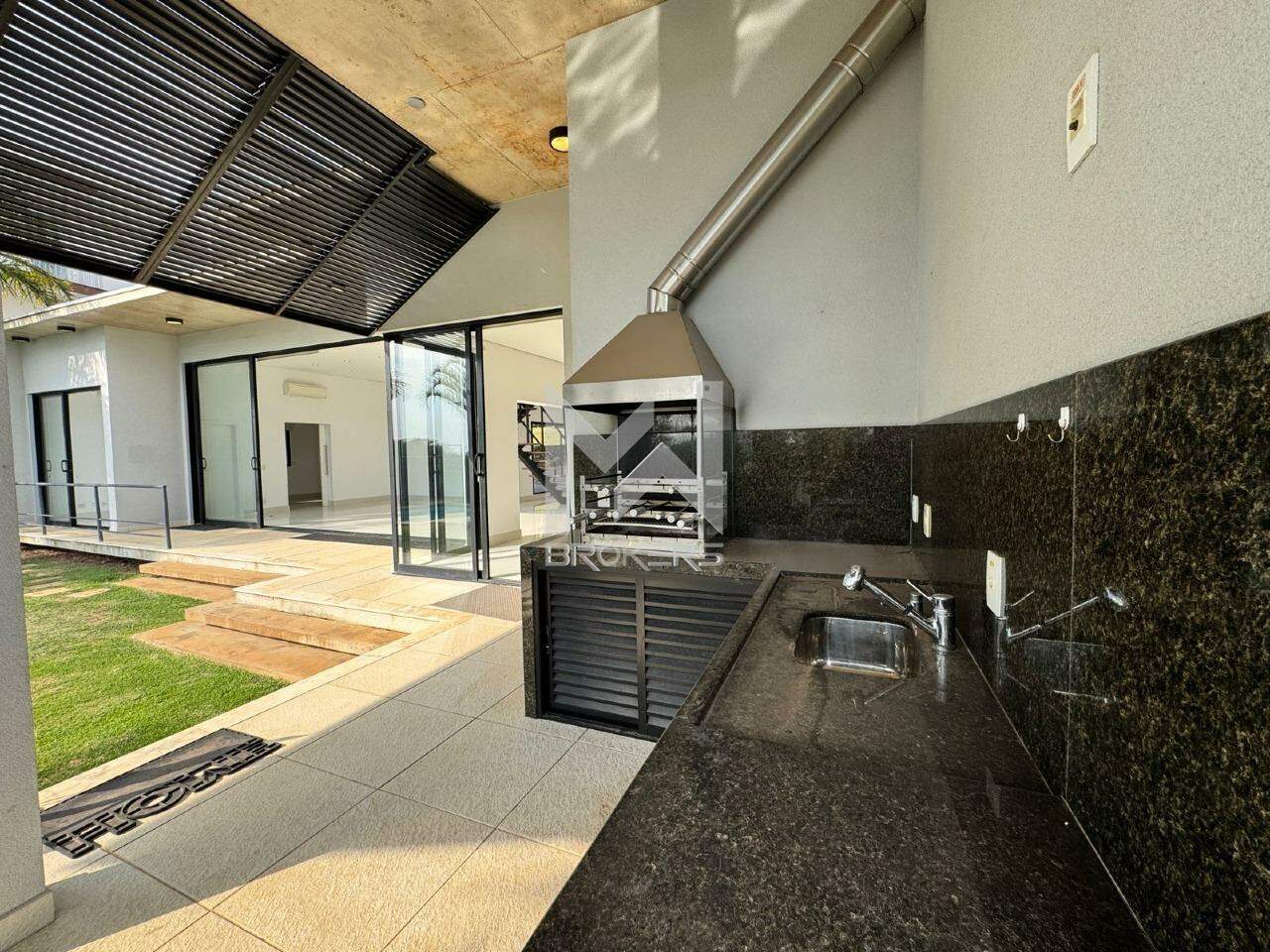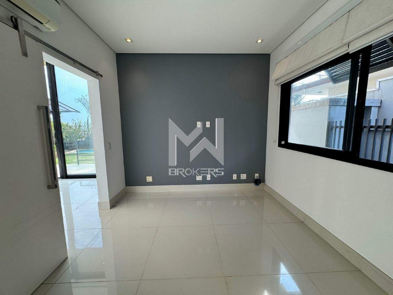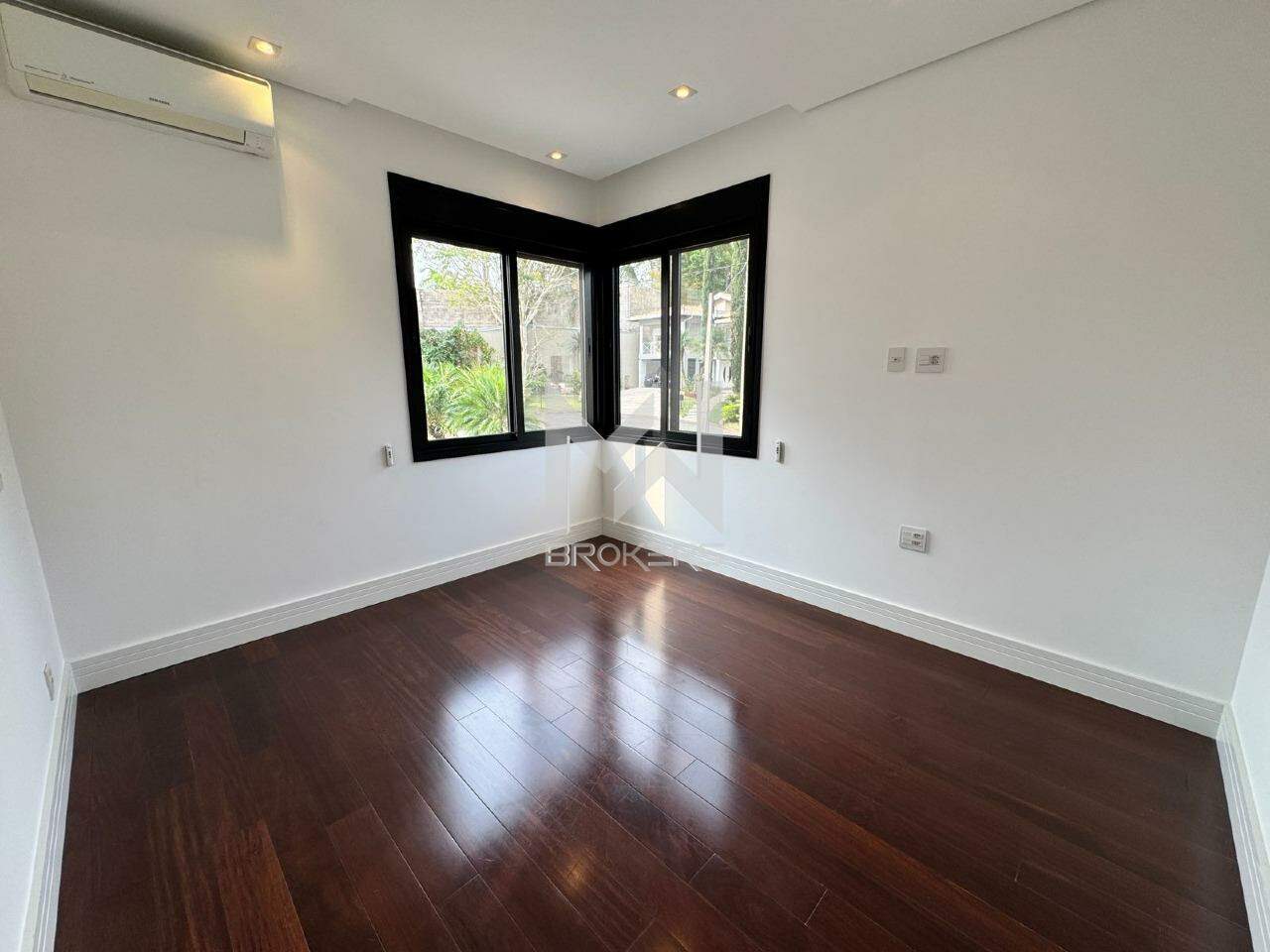 Hall de entrada, lavabo, sala de estar e de refeições integradas, escritório, sala de TV, cozinha e copa integradas à área gourmet, despensa, área de serviços com dormitório e banheiro de doméstica, depósito, quintal gramado e canil.