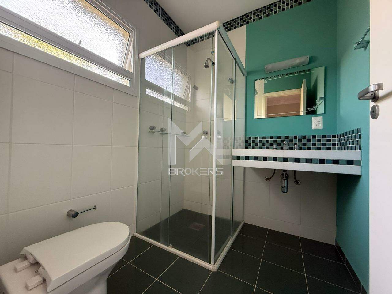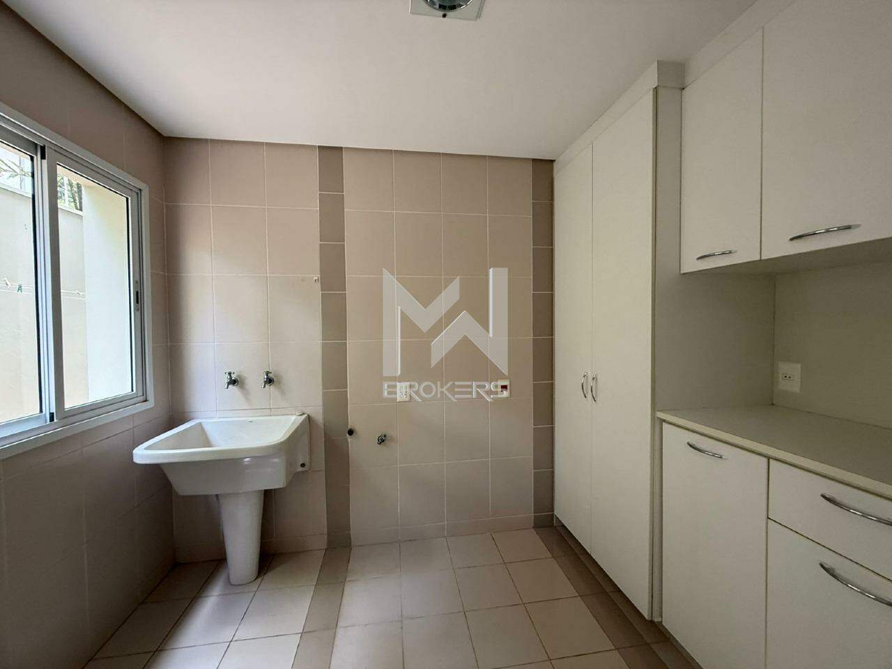 Sala dois ambientes com aquário, sala de TV com lavabo, cozinha com armários, área de serviços e suíte de doméstica.
