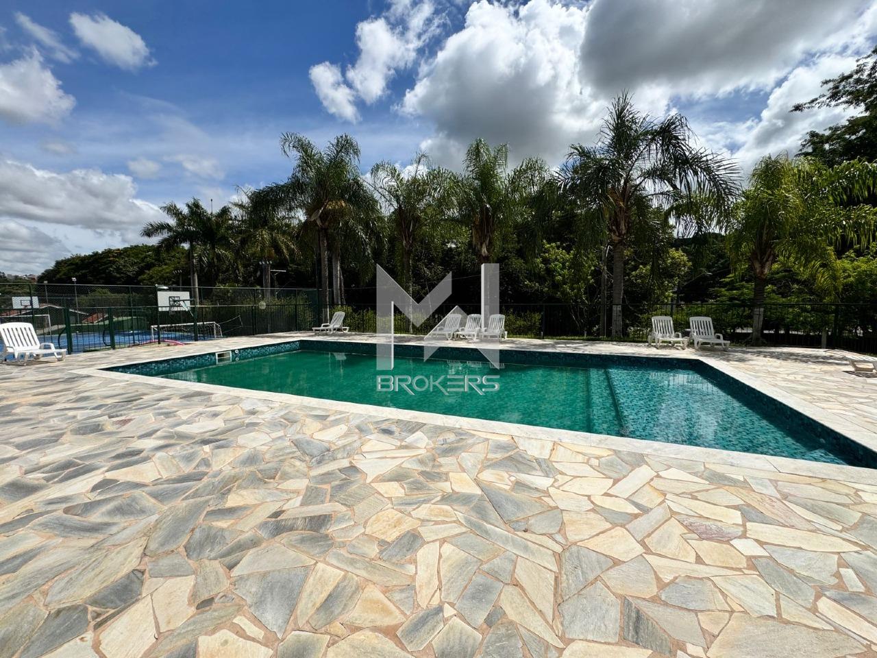 Área de lazer do condomínio com piscinas adulto e infantil, 2 salões de festas, um com churrasqueira e outro com cozinha completa em frente à piscina, quadra poliesportiva, estacionamento para visitantes e uma linda área verde com vista panorâmica.