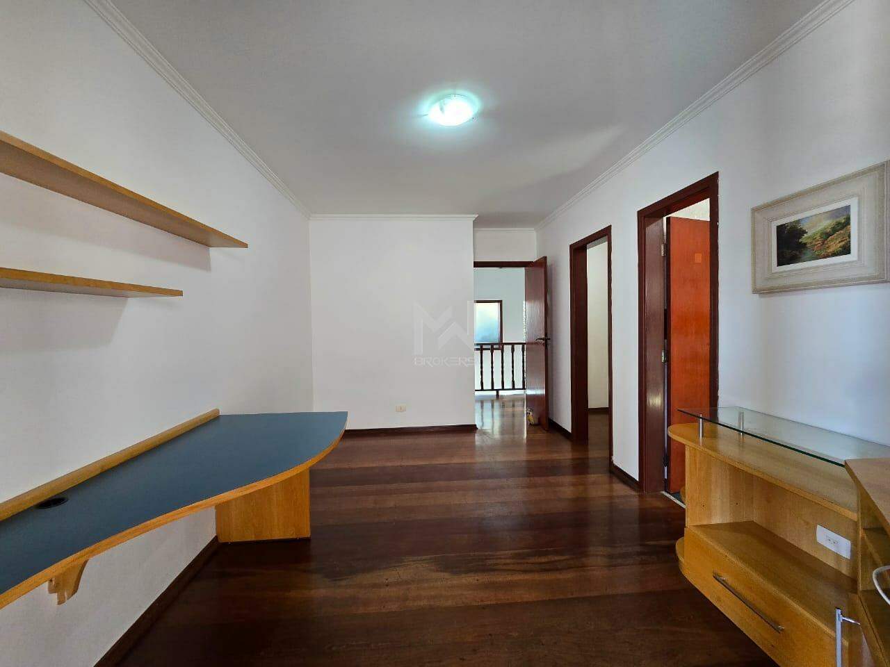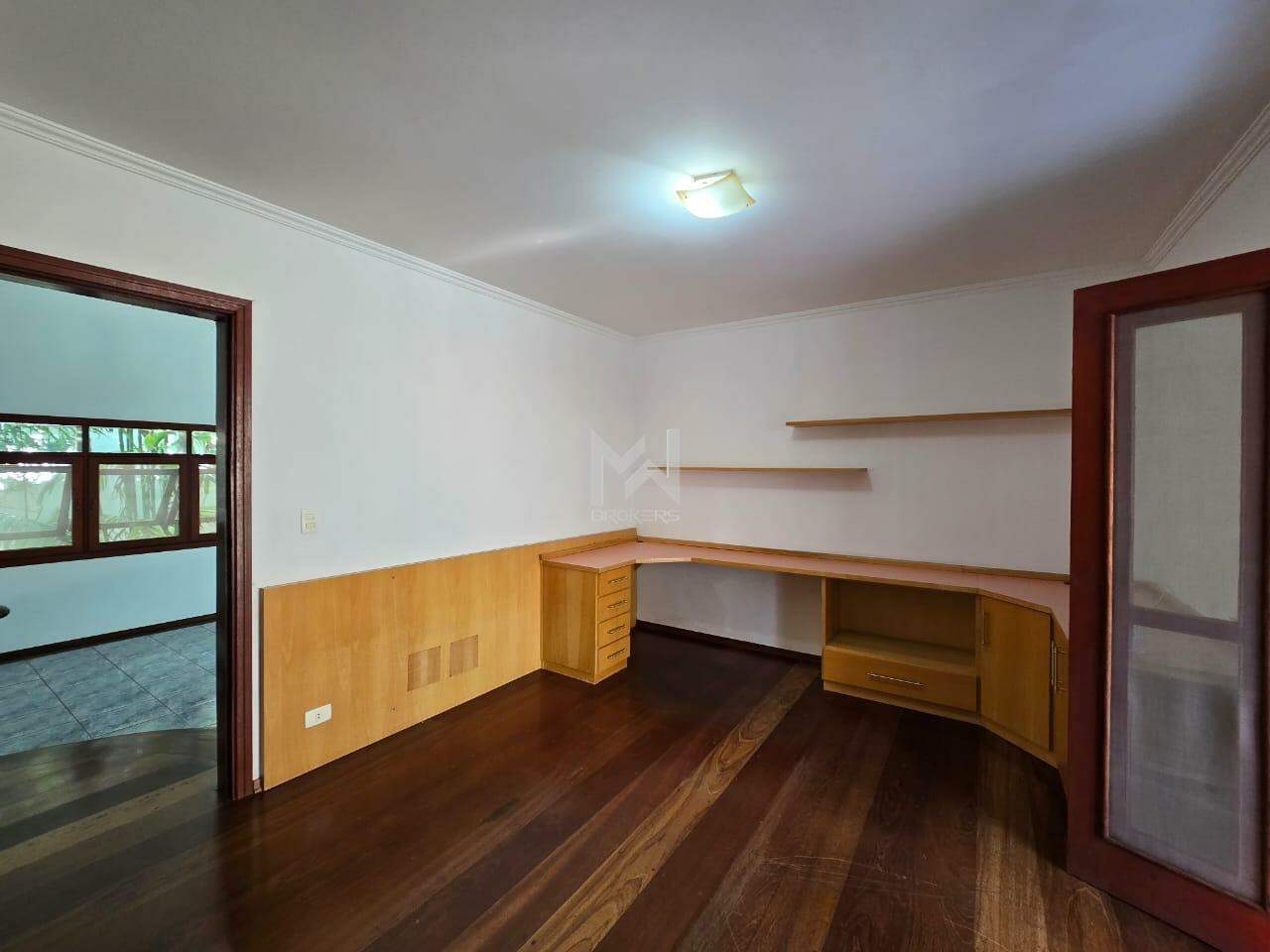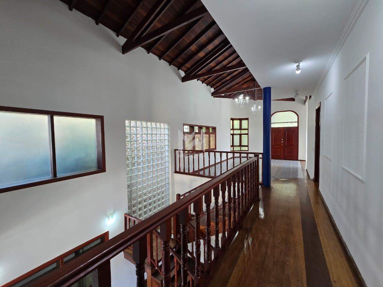 Sala dois ambientes com jardim de inverno, sendo a de estar com lareira e sala de refeições, sala de TV, lavabo, cozinha americana toda planejada com despensa, área de serviços e sala de jogos.