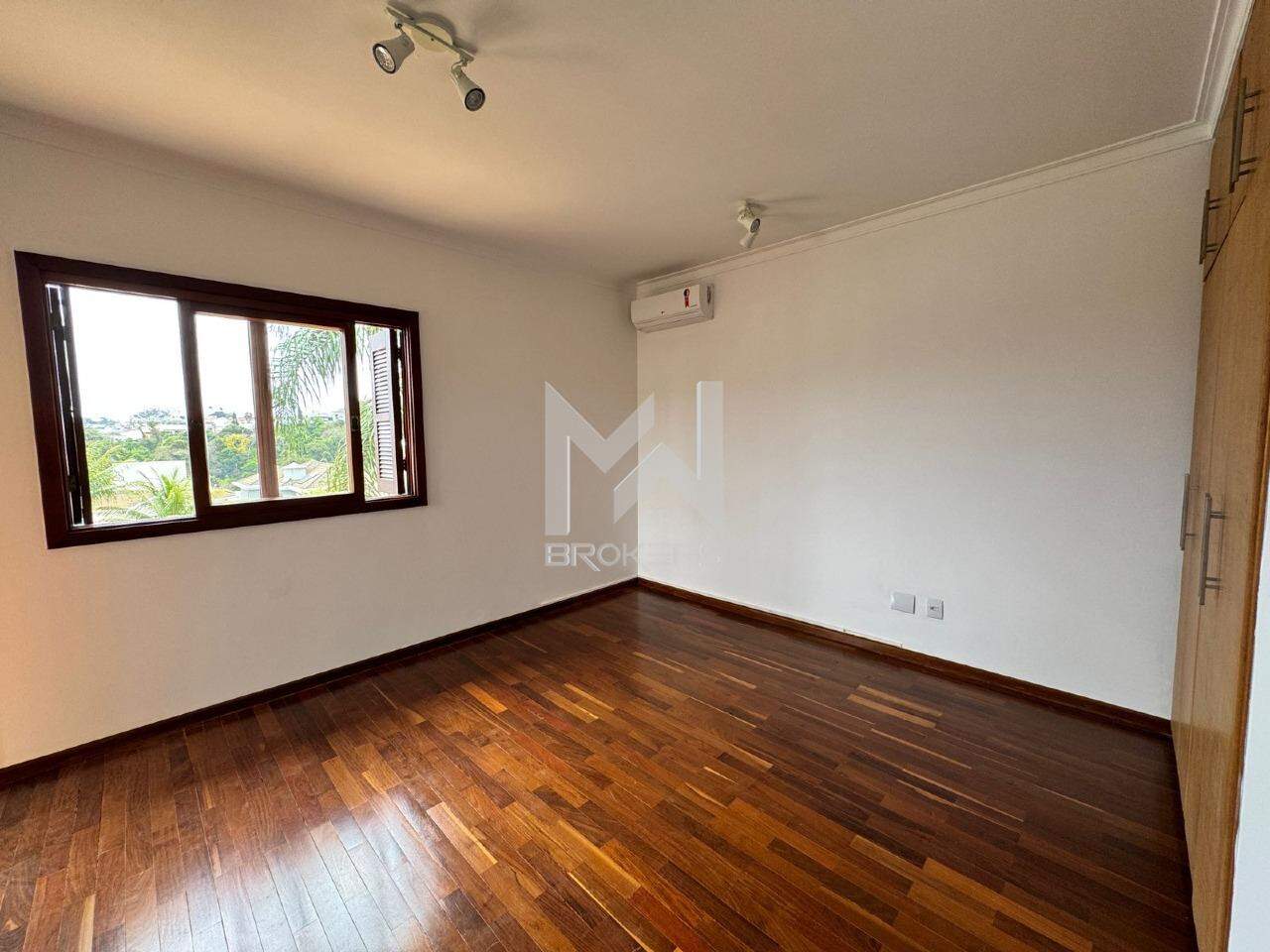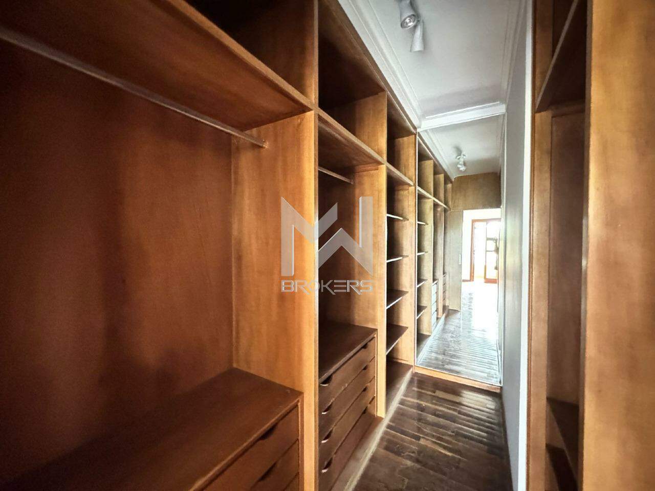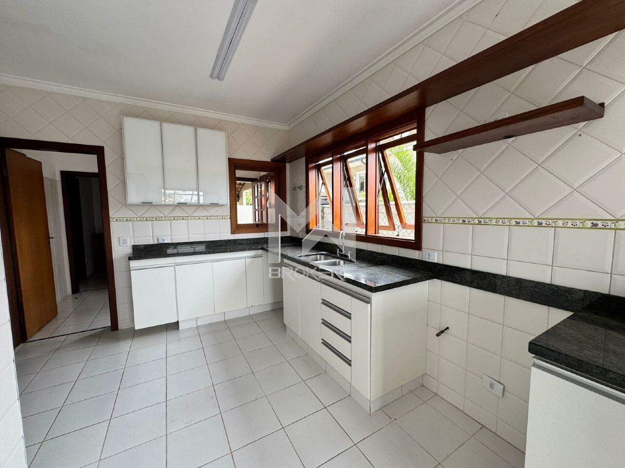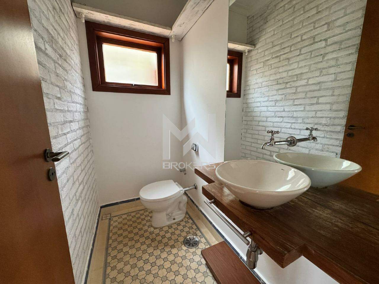 No pavimento inferior há 1 suíte, que pode ser utilizada como escritório, além de lavabo, jardim de inverno, sala de estar com lareira, sala de jantar e sala de TV.