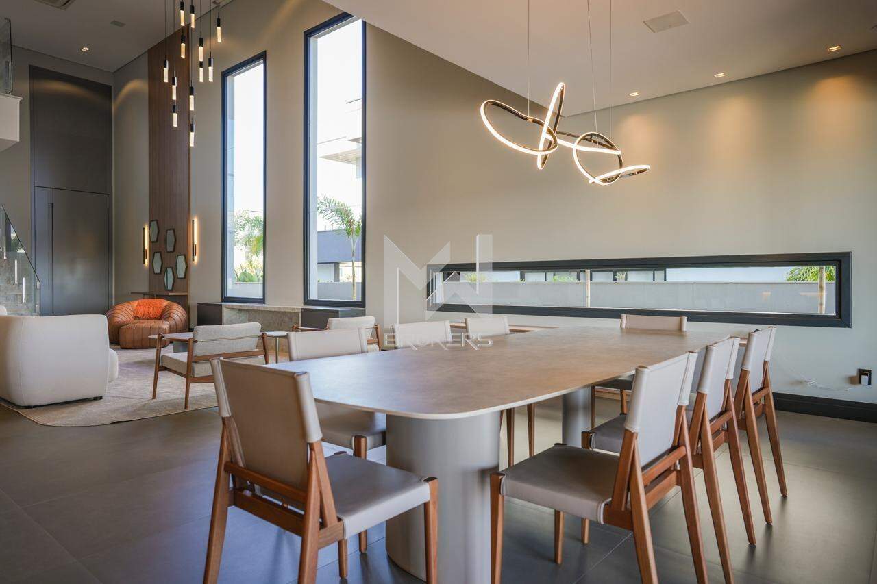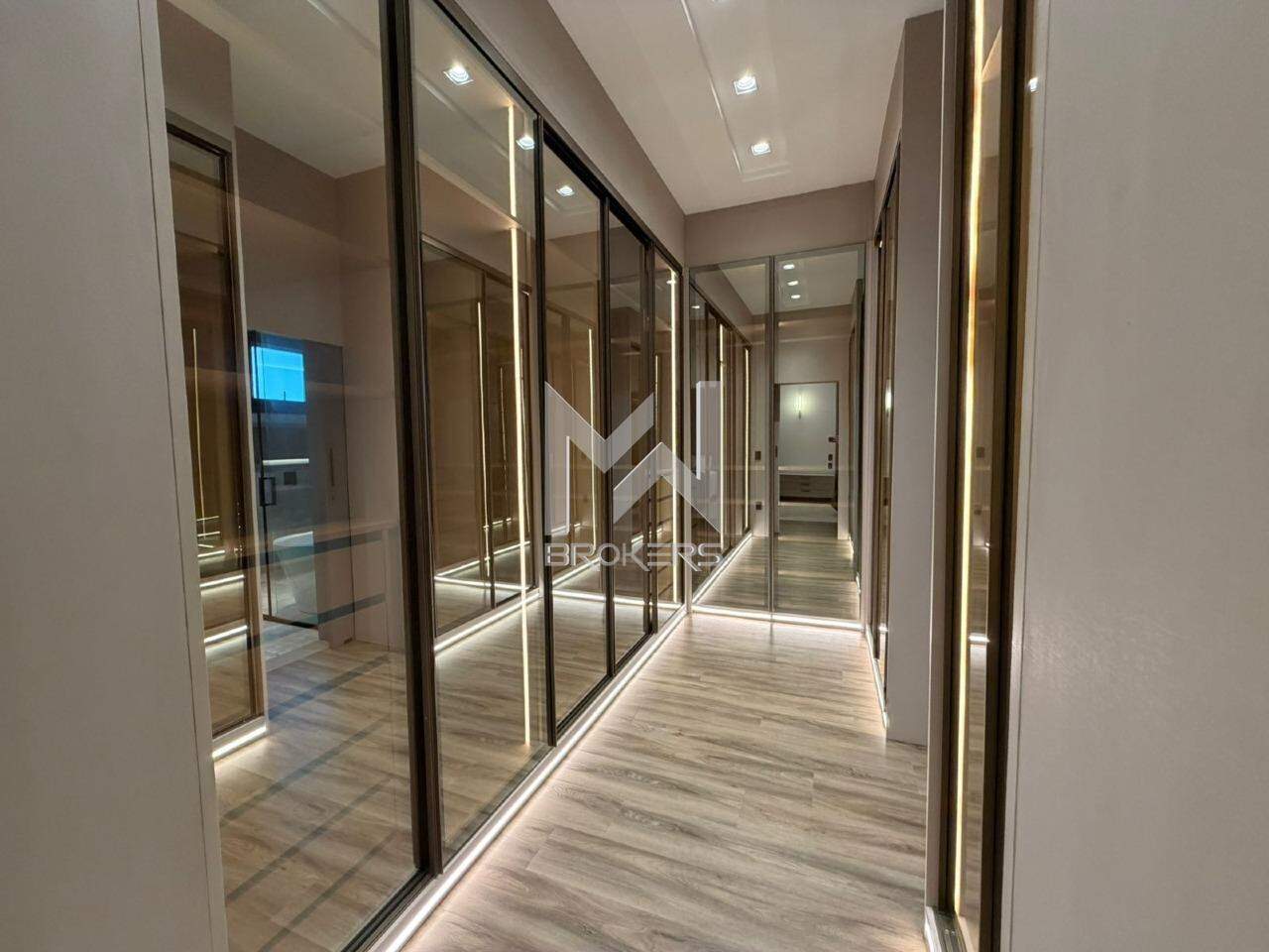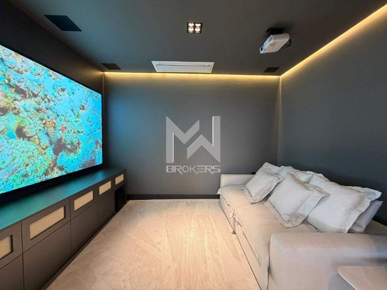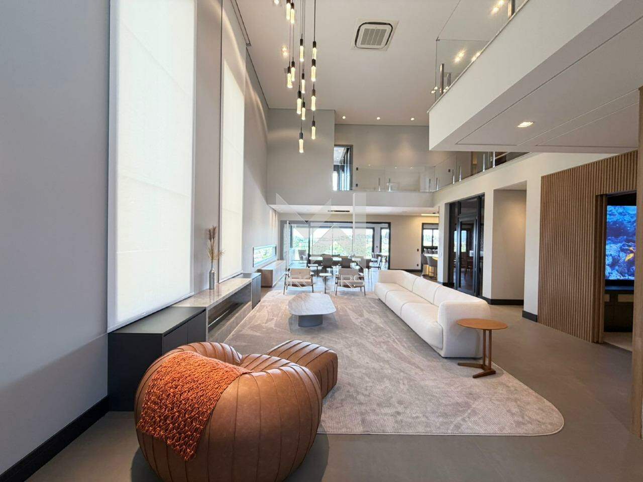 Salas de estar e de refeições integradas, lavabo, sala de TV, suíte reversível em escritório no térreo, cozinha e área de serviços. A adega climatizada é um show a parte: iluminada e com sistema touch.