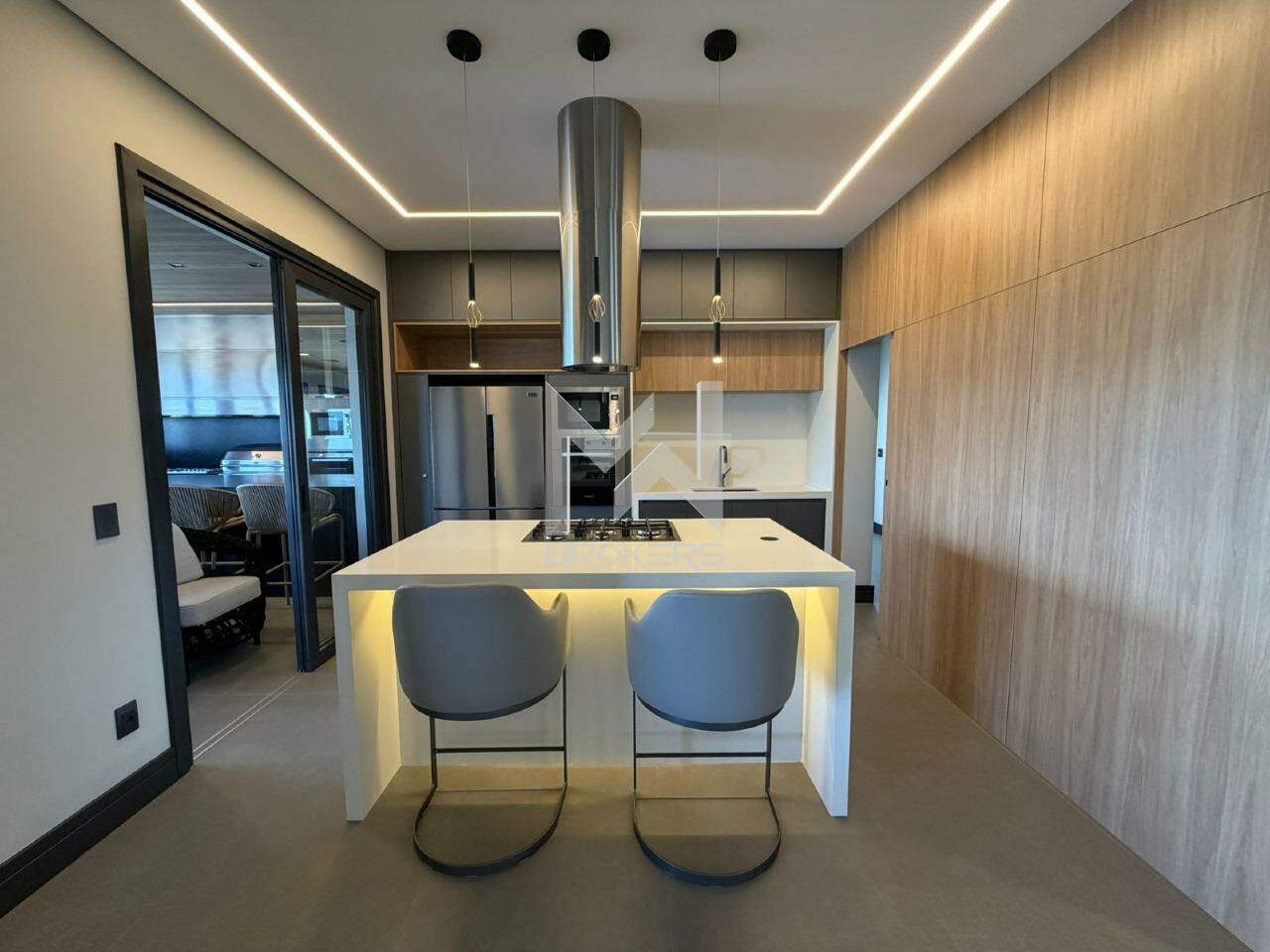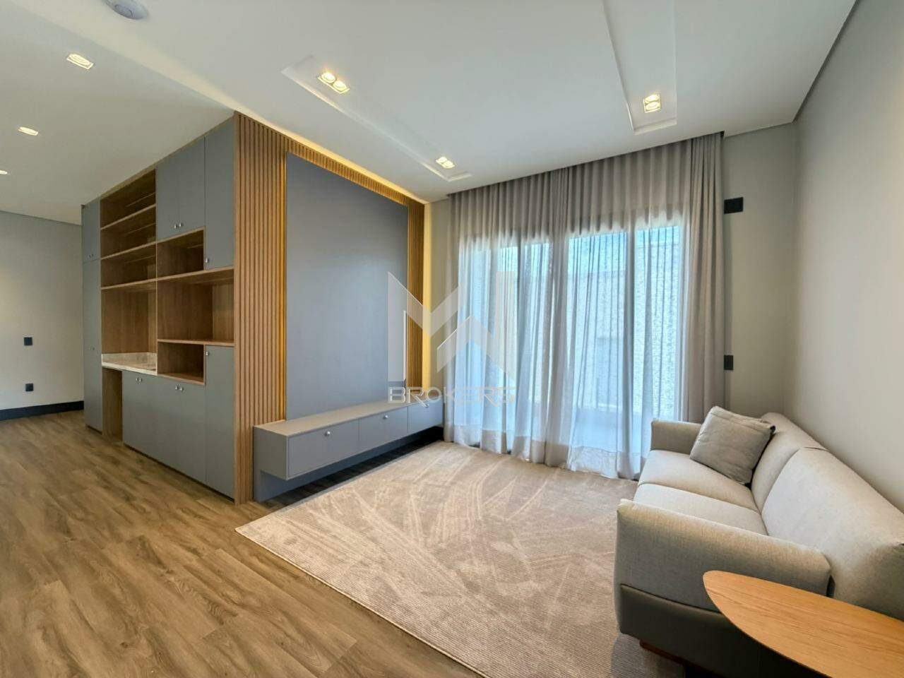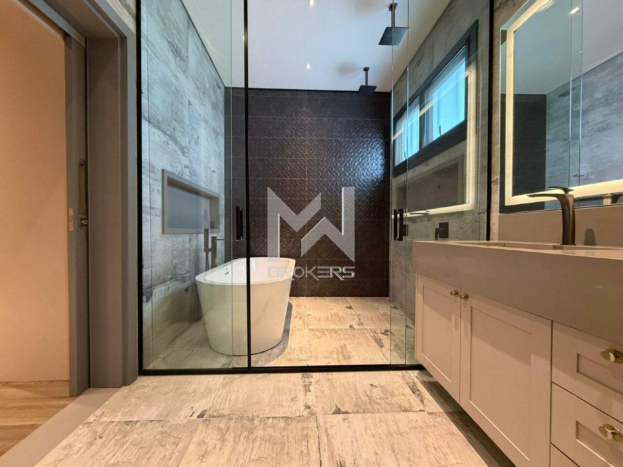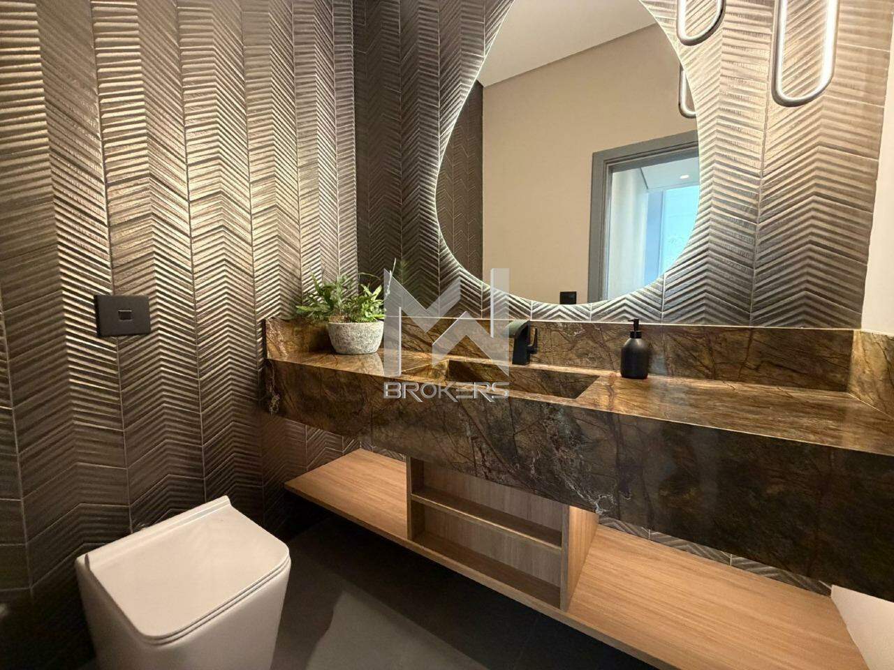 Salas de estar e de refeições integradas, lavabo, sala de TV, suíte reversível em escritório no térreo, cozinha e área de serviços. A adega climatizada é um show a parte: iluminada e com sistema touch.