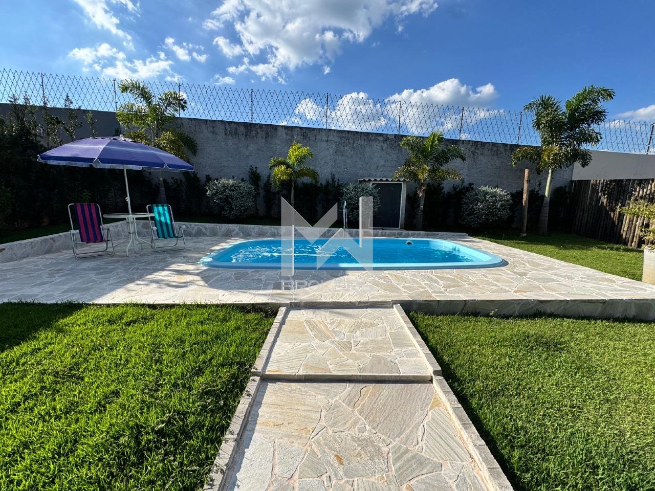 Na área externa, o imóvel oferece quintal amplo com piscina iluminada, jardim com paisagismo, pergolado e banheiro de apoio.