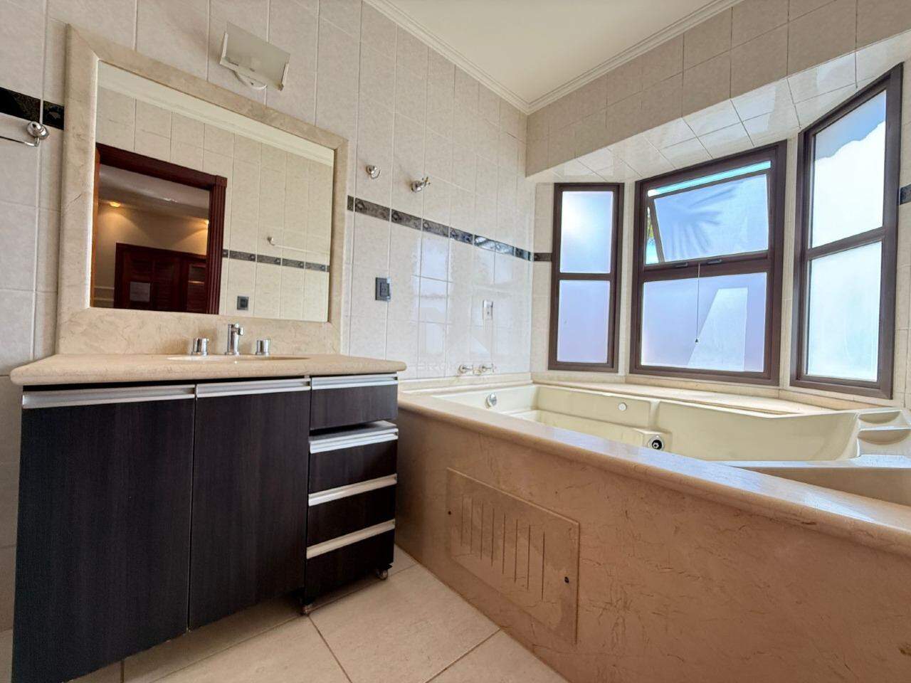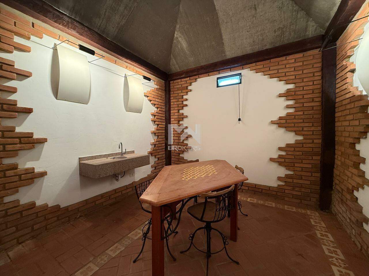 A propriedade conta com elevador que da acesso ao pavimento inferior, onde temos uma churrasqueira completa de alvenaria, sauna húmida com toda infra, dois dormitórios que dividem um banheiro no estilo americano, adega subterrânea piscina de alvenaria rodeada por um jardim plano e um banheiro de apoio.