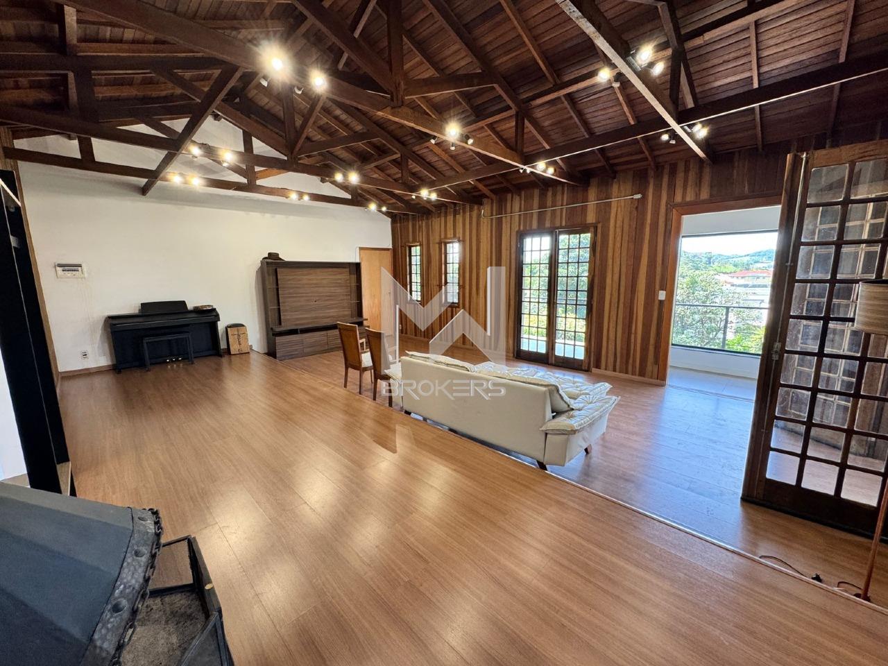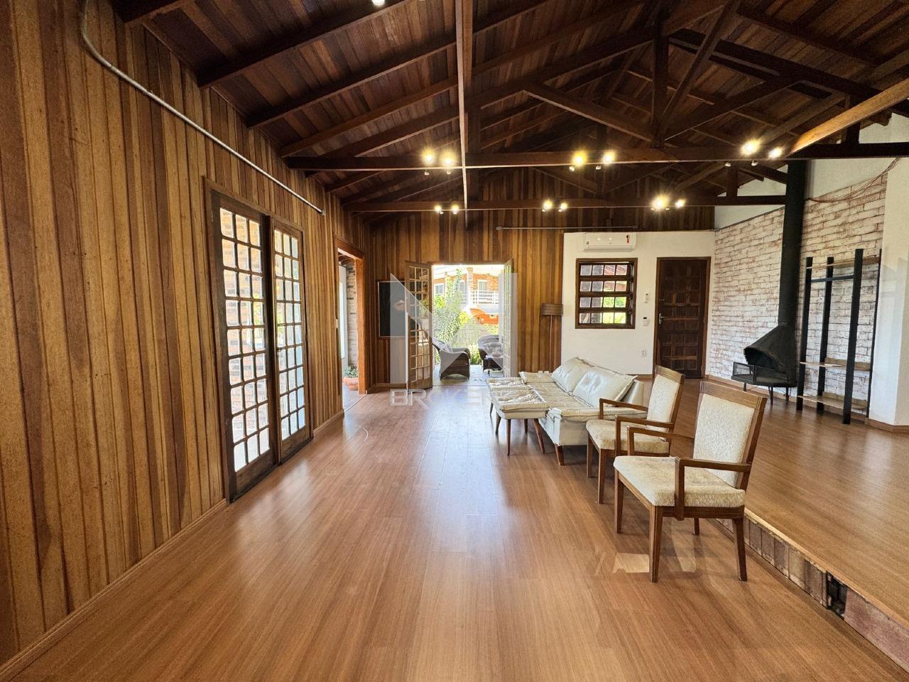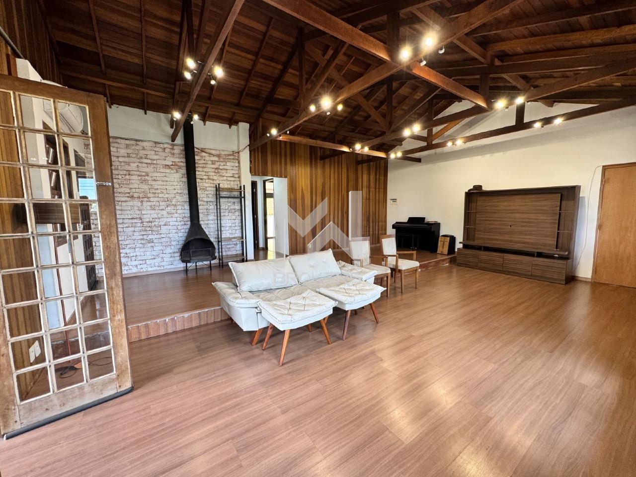 No pavimento superior, sala de estar dois ambientes com lareira e 03 dormitórios, sendo 02 suítes.