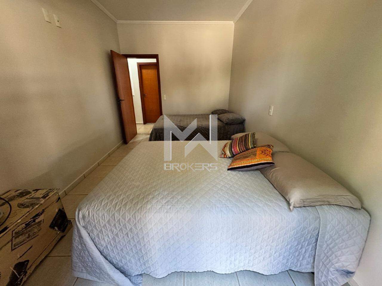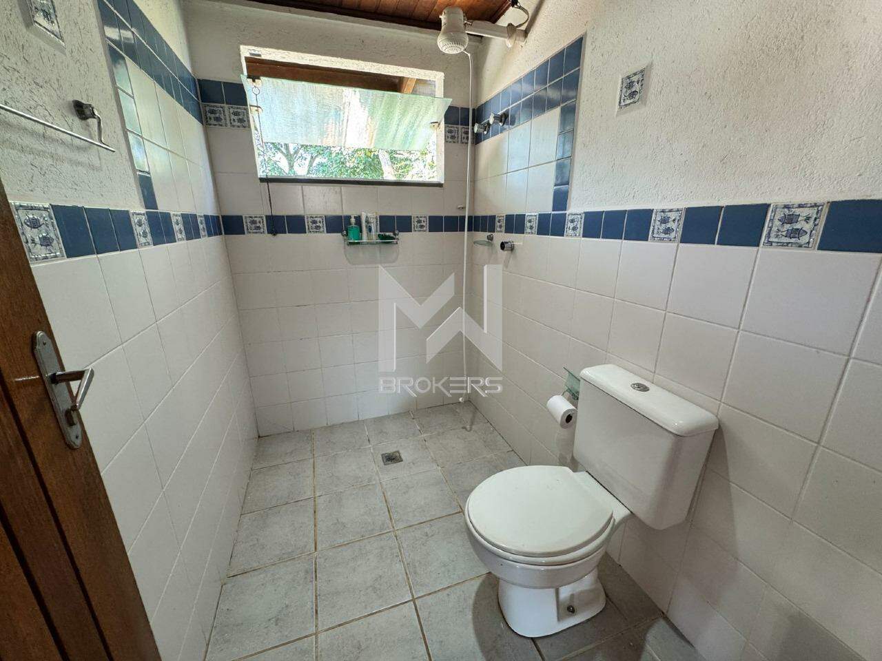 No nível inferior, a casa dispõe de uma suíte de hóspedes com armário e banheiro completo, mais três dormitórios adicionais, e banheiro social. Todos dormitórios contam com portas balcão em alumínio com mosquiteiro.