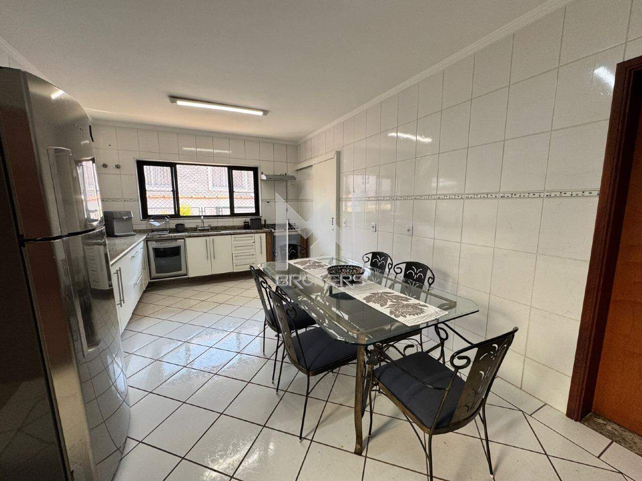 No nível da rua, a casa oferece uma elegante sala de estar com pé direito alto, sala de jantar integrada e lavabo. A cozinha é ampla, repleta de armários planejados, além de despensa, lavanderia e dependência completa de serviço.