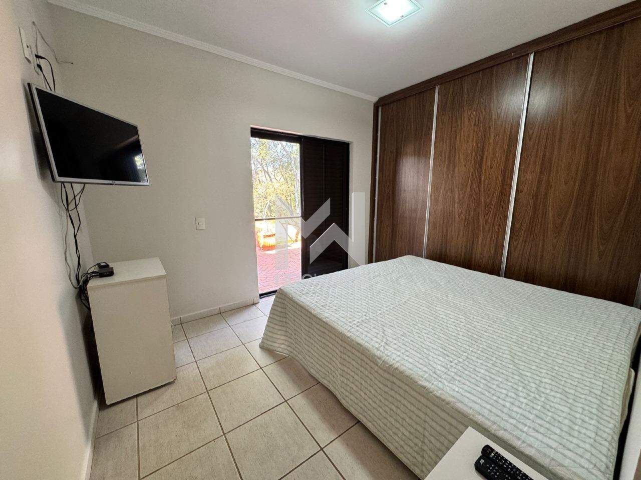 No pavimento superior, a suíte máster conta com closet com armários, banheiro espaçoso com hidro e uma varanda com vista deslumbrante. Há ainda mais um dormitório com armários e um banheiro social.