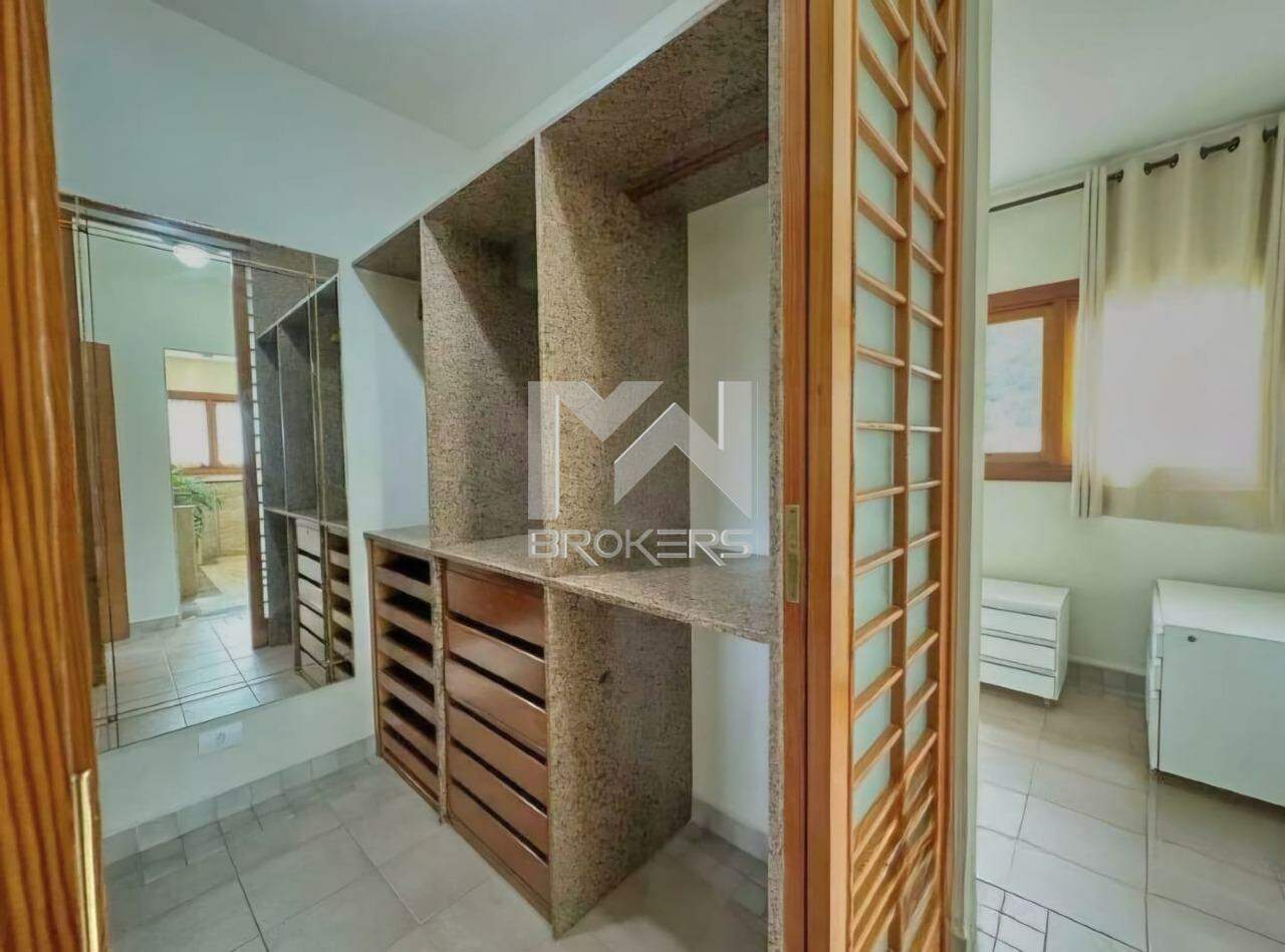 No pavimento superior, 5 dormitórios, todos suítes, sendo uma master com closet e banheira e as demais com armários planejados e ar condicionado.