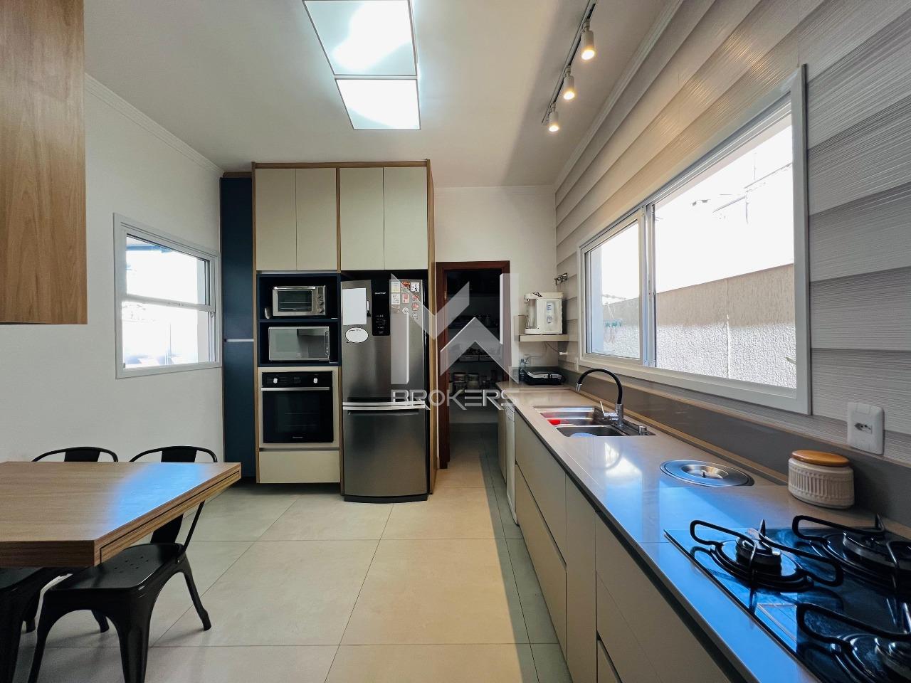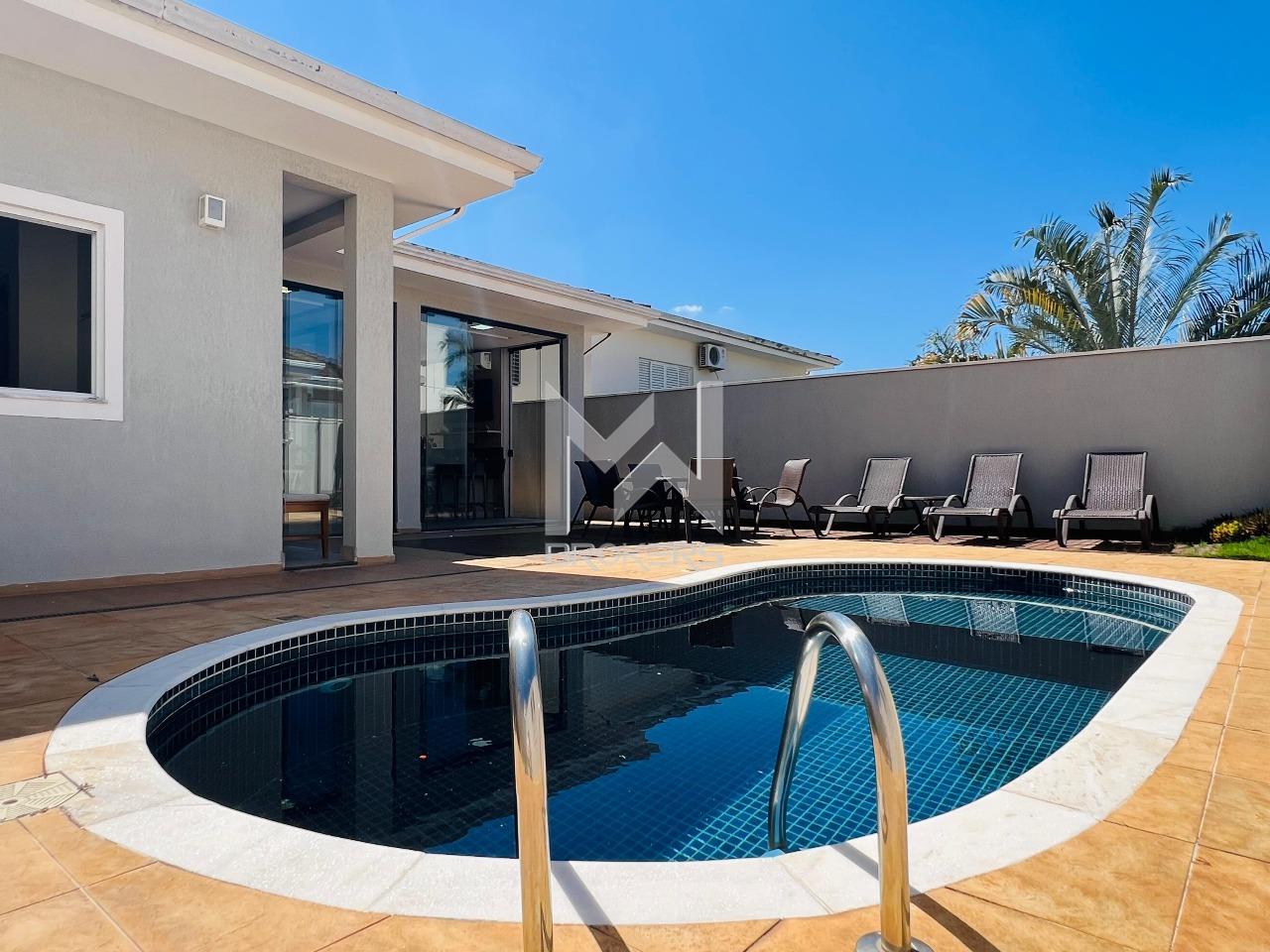 Casa com ambientes amplos e bem distribuídos, com escritório, salas de estar e jantar integradas, lavabo, cozinha com despensa e lavanderia, espaço gourmet, piscina aquecida, banheiro externo e quarto de serviço. O imóvel possui 12 placas fotovoltaicas.