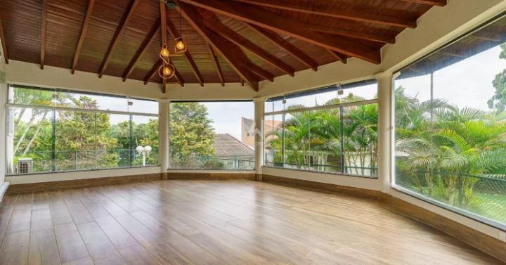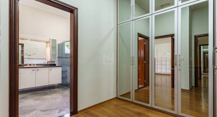 No pavimento superior, sala íntima com vista e 03 dormitórios, todos suítes espaçosas, sendo uma master com closet.