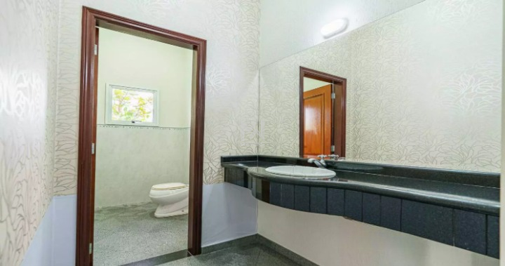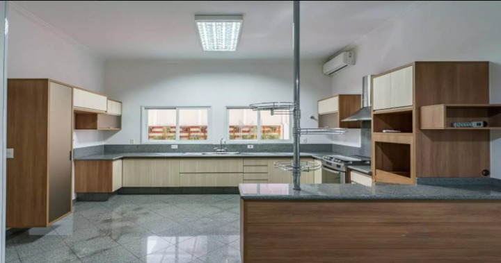 Sala dois ambientes, lavabo, escritório, cozinha planejada com despensa e sala de almoço e área de serviços.