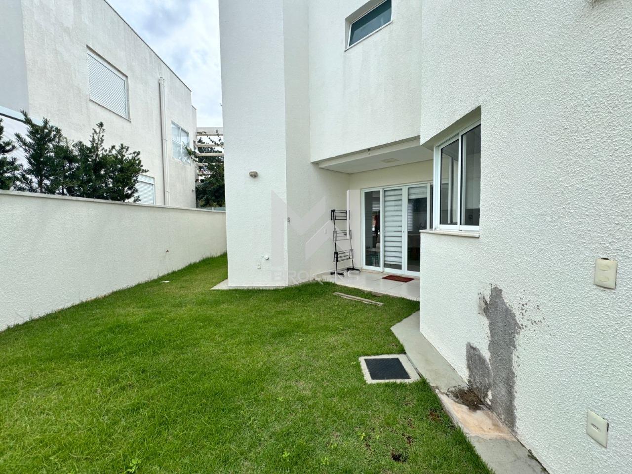 Salas de estar e de refeições integradas, lavabo, sala de TV reversível em dormitório no térreo, cozinha com copa e despensa e área de serviços. Quintal com gramado e banheiro de apoio.