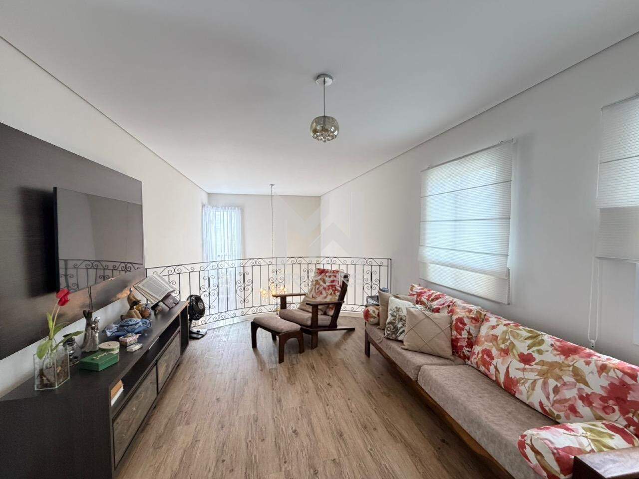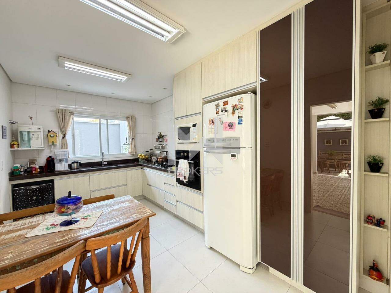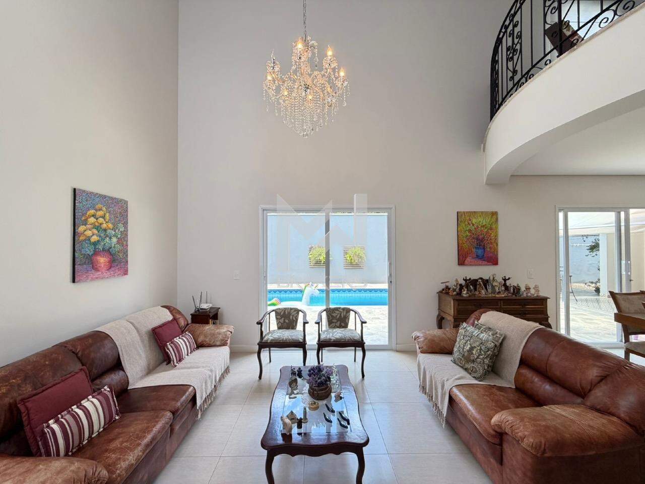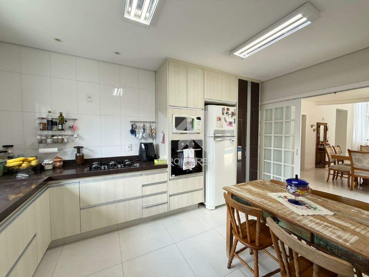 Sala de estar, sala de TV, lavabo, escritório, sala de refeições, cozinha e área de serviços.