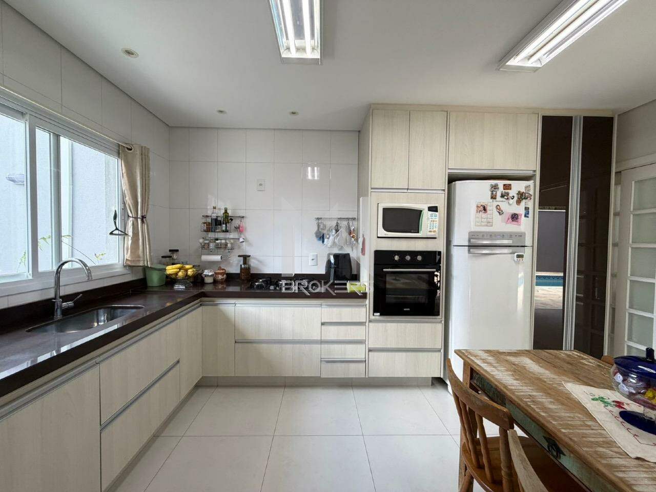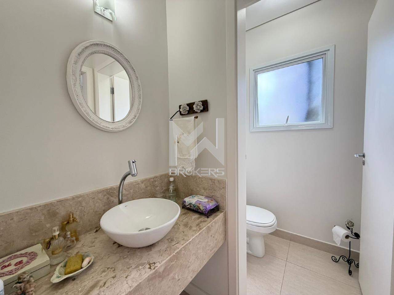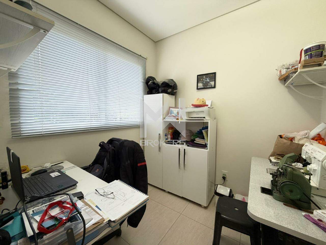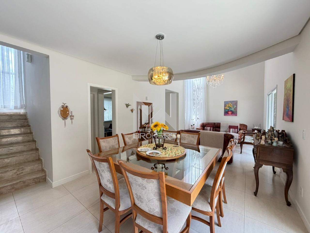 Sala de estar, sala de TV, lavabo, escritório, sala de refeições, cozinha e área de serviços.