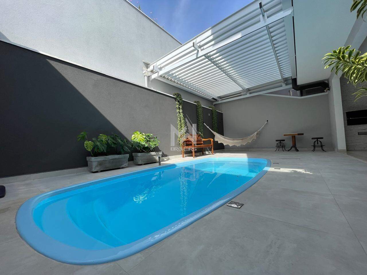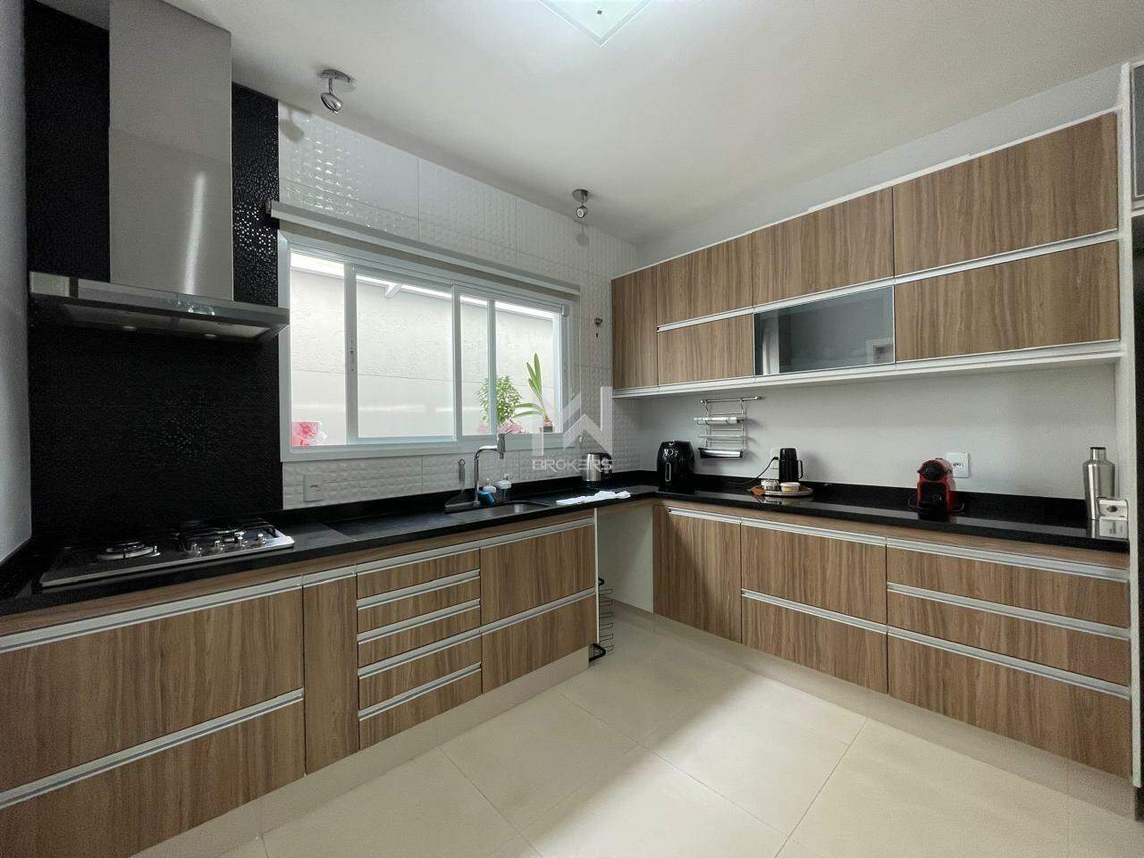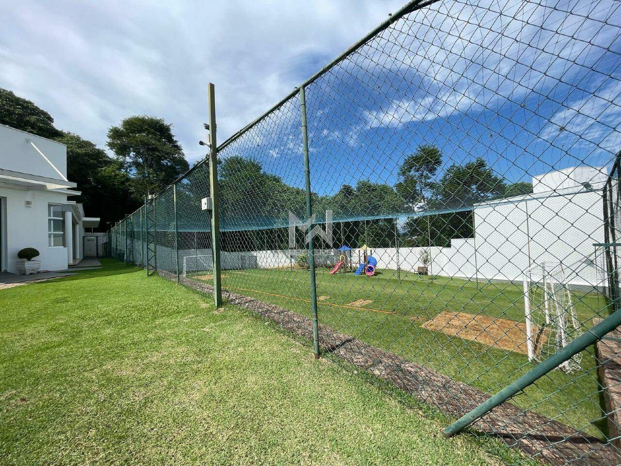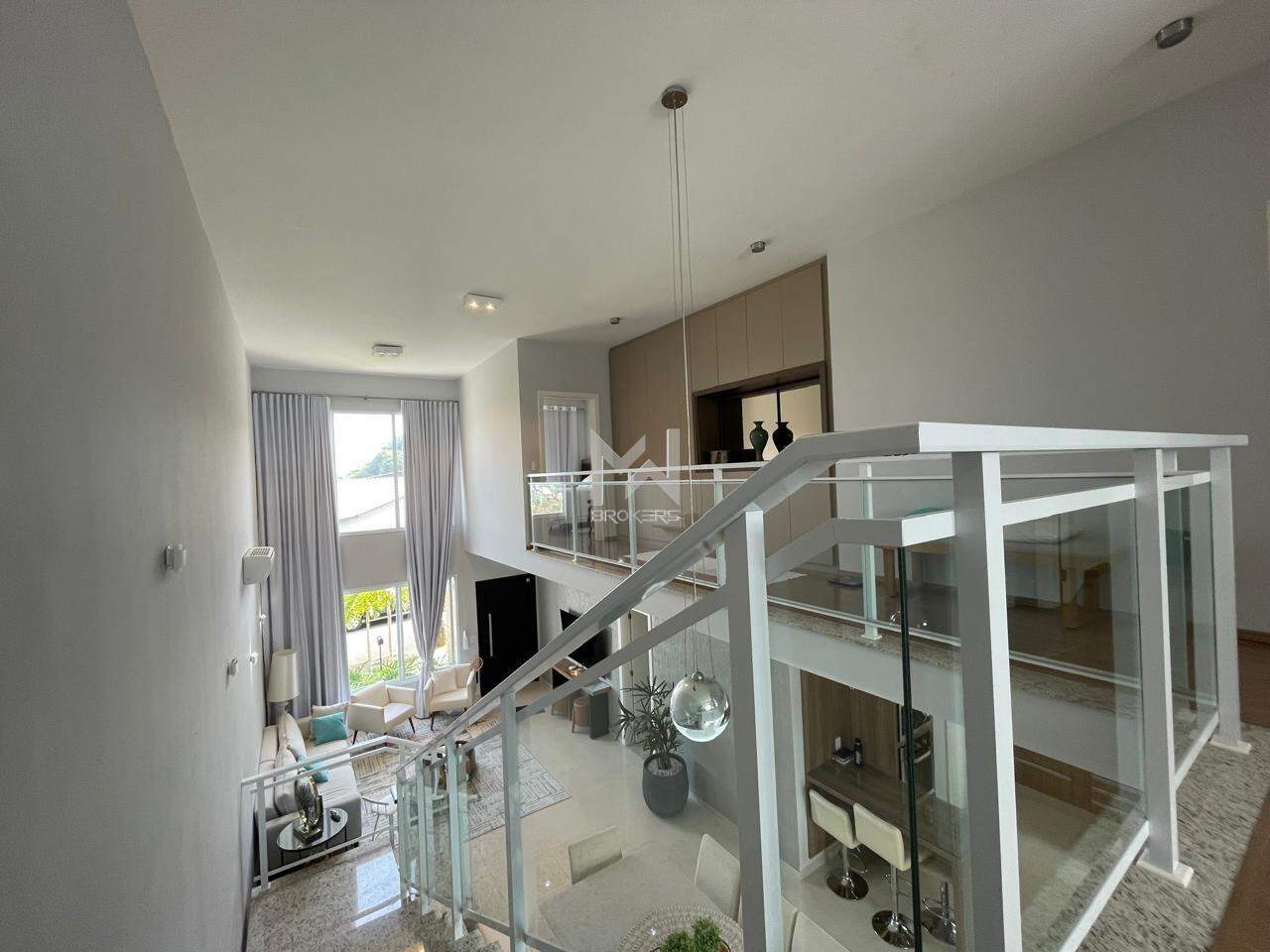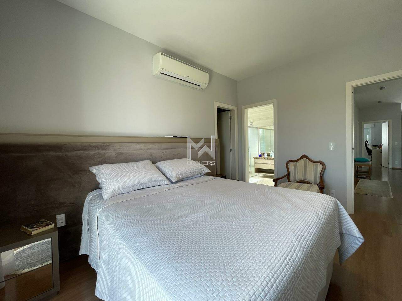 A casa possui três suítes confortáveis, sendo a master com closet e varanda privativa. Um escritório versátil, que também pode ser usado como sala de TV, oferece praticidade para quem trabalha em casa. São cinco banheiros no total, todos com excelente acabamento. O imóvel conta ainda com sistema de aquecimento solar, ar-condicionado instalado em diversos ambientes, energia fotovoltaica e armários planejados em toda a casa. A garagem tem capacidade para até quatro veículos.