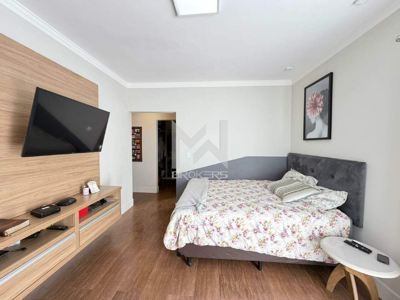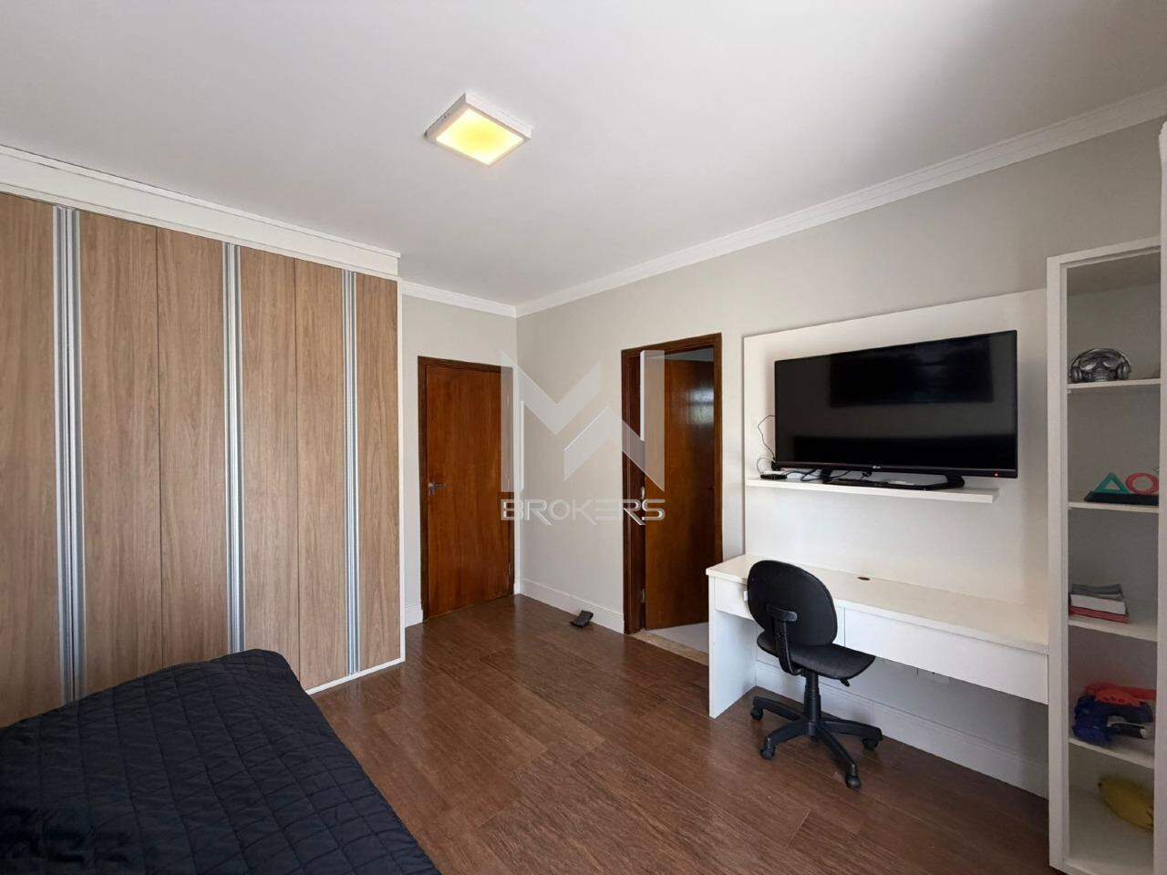 No pavimento superior, 04 dormitórios, todos suítes com varanda, sendo uma master com hidro e closet.