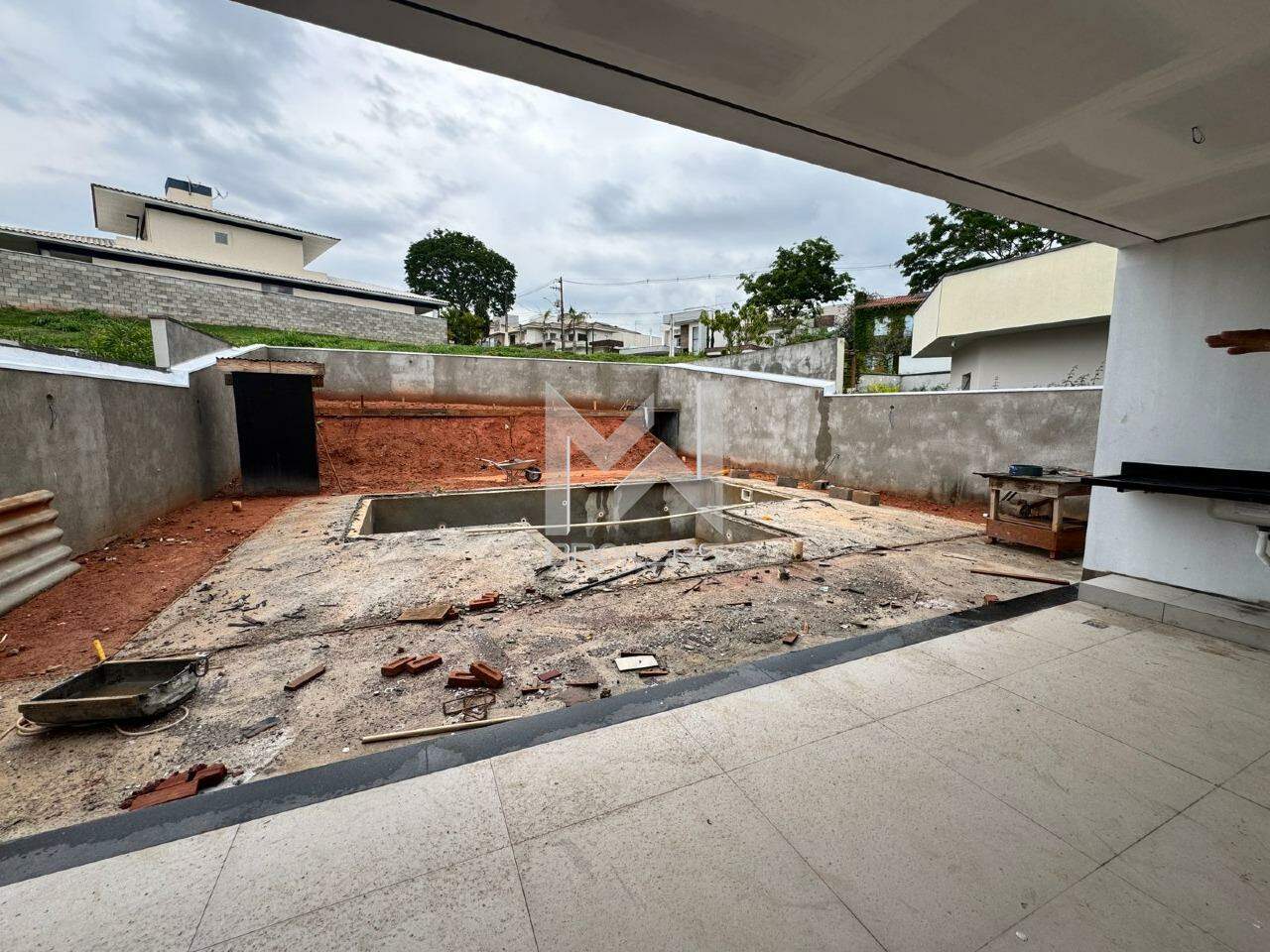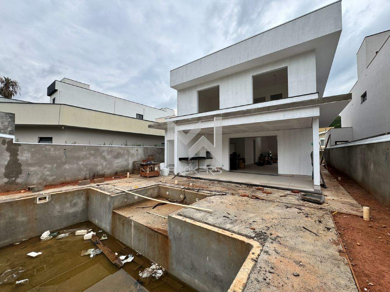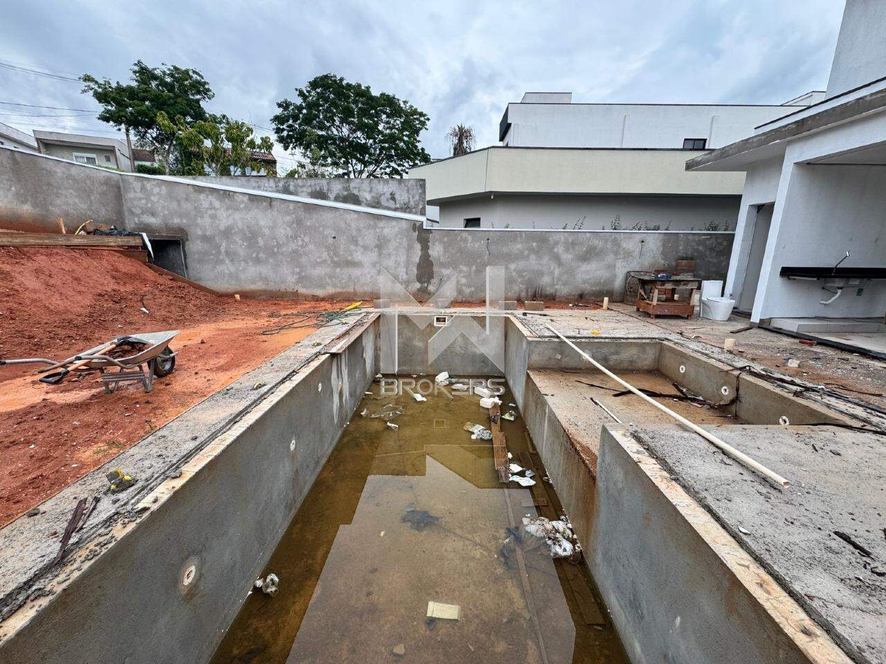 Casa contemporânea em fase final de construção no Condomínio Reserva dos Vinhedos, em Louveira/SP. A fachada possui linhas retas, pé-direito duplo e ambientes bem distribuídos.