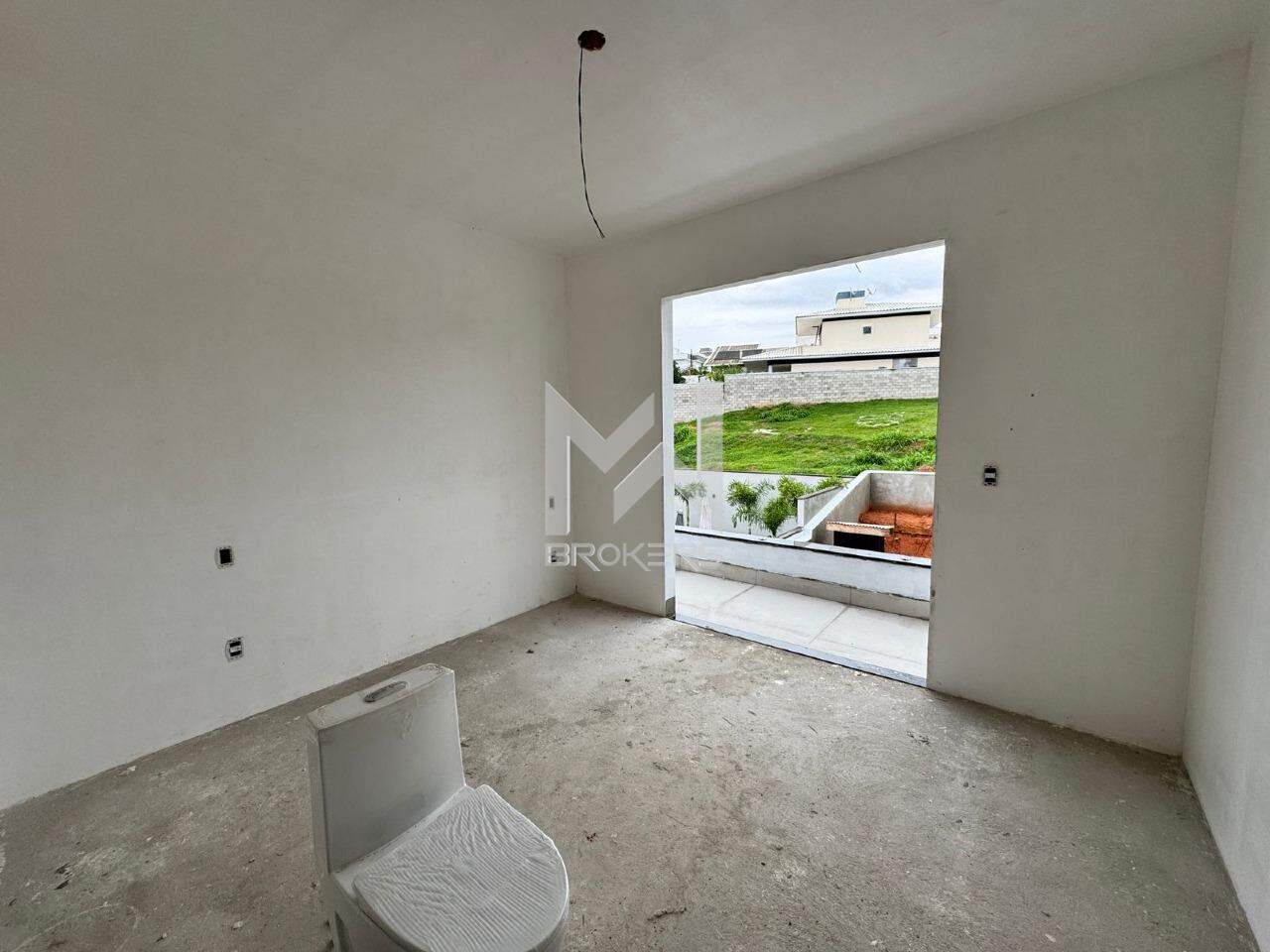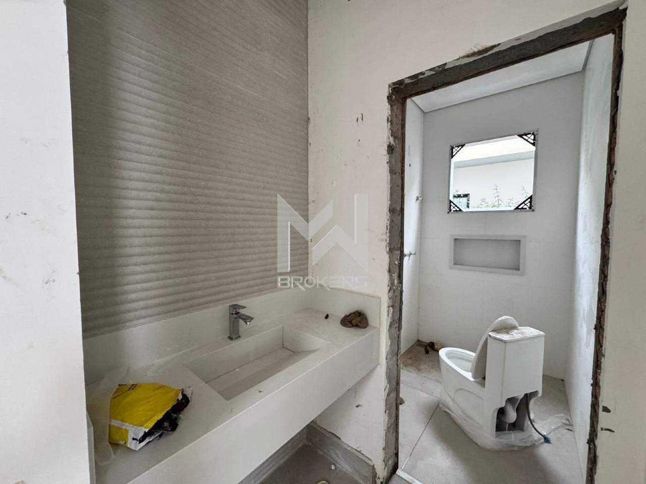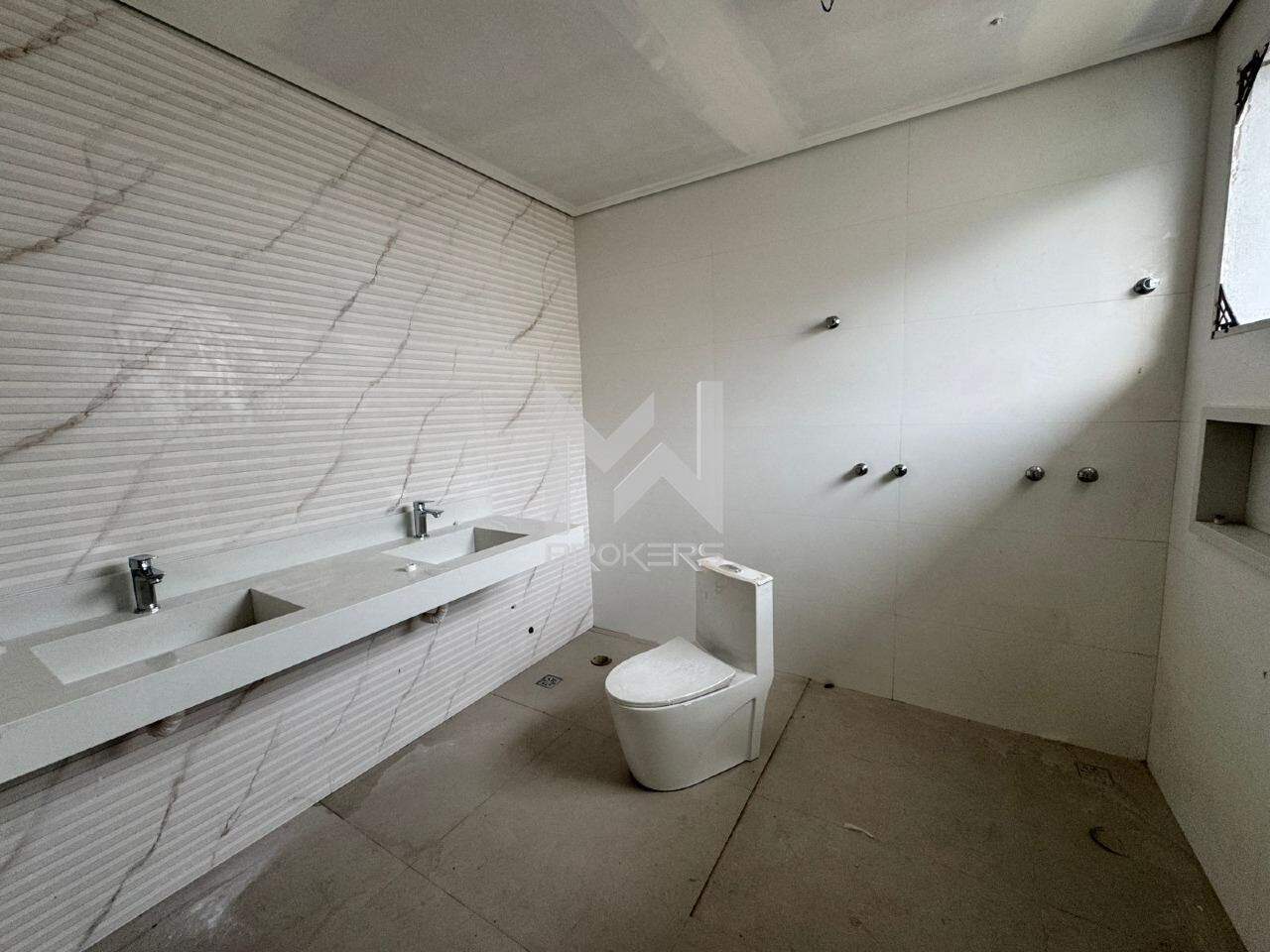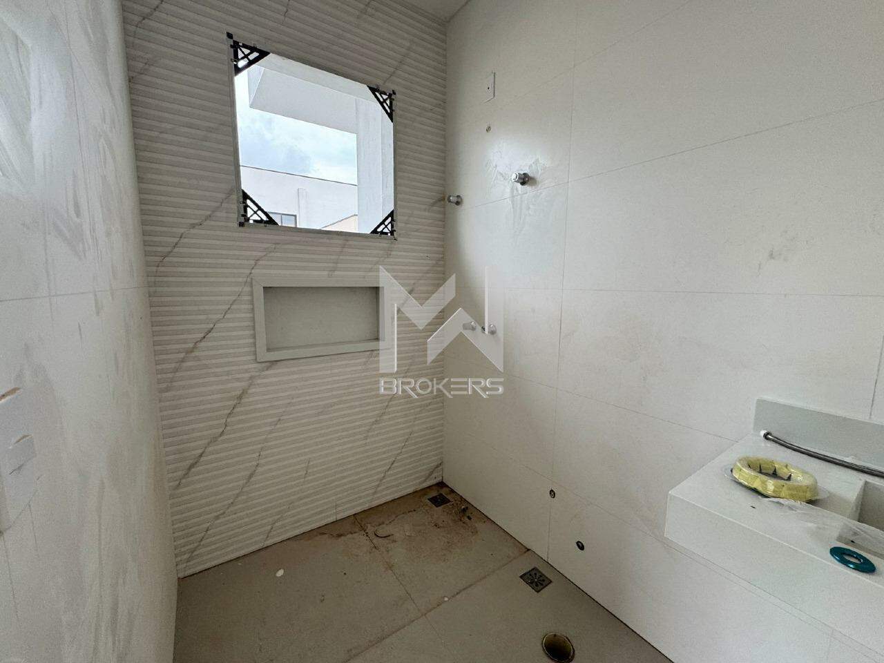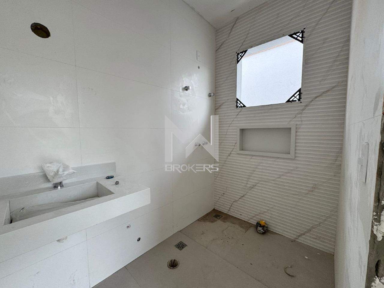 No piso superior, são 3 suítes, todas com ponto para ar-condicionado. A suíte master possui pia dupla e chuveiro duplo, além de varanda frontal.