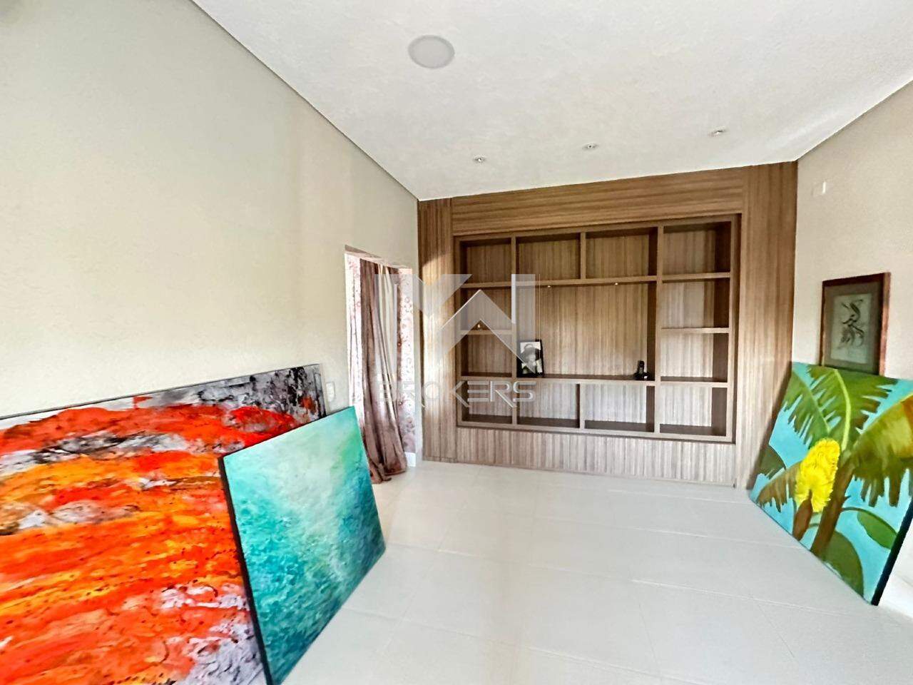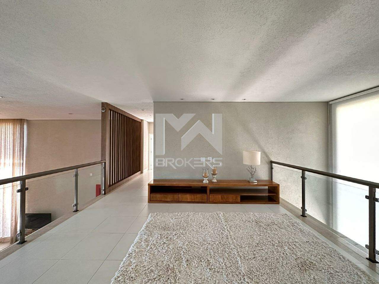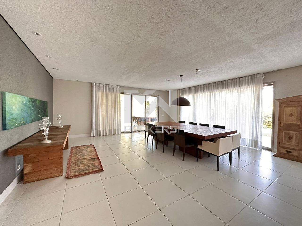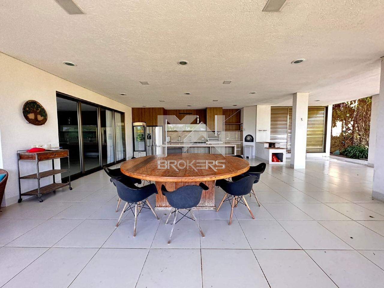 A casa oferece uma ampla sala com 4 ambientes, com um pé direito duplo que confere ainda mais grandiosidade ao espaço. Conta também com uma adega totalmente moderna e uma cozinha igualmente moderna, equipada com uma ilha central, além de um lavabo espaçoso. Ao todo, são 8 suítes, com a casa principal oferecendo 6 suítes incríveis, todas com armários e ar-condicionado, e que se abrem para uma varanda ampla com vistas deslumbrantes. Além disso, há mais 3 suítes destinadas a hóspedes, situadas na área externa, bem como um espaço dedicado a um ateliê.