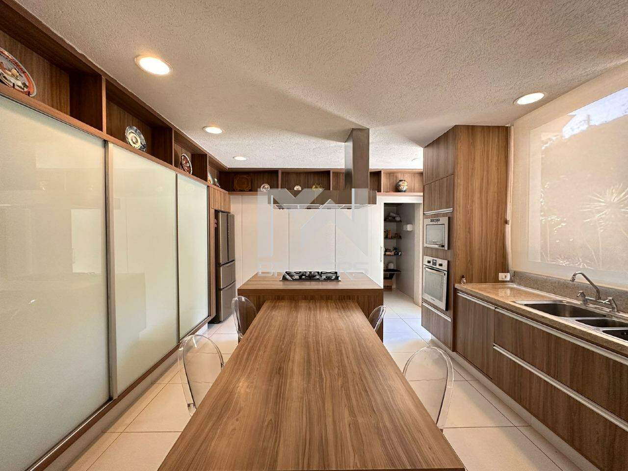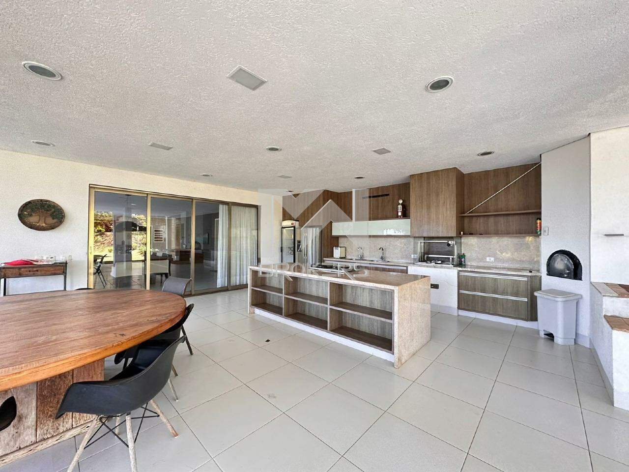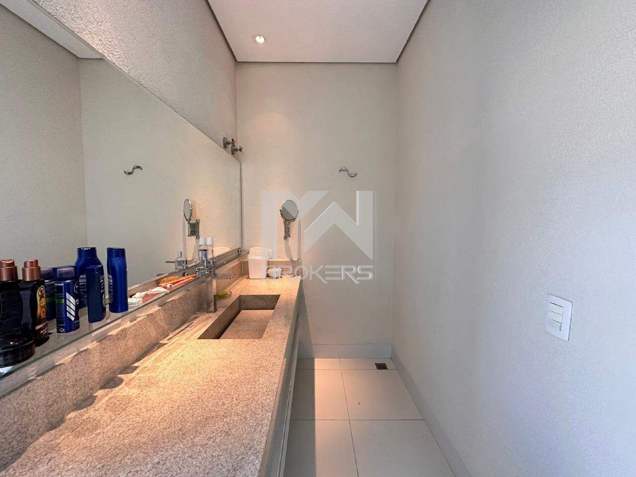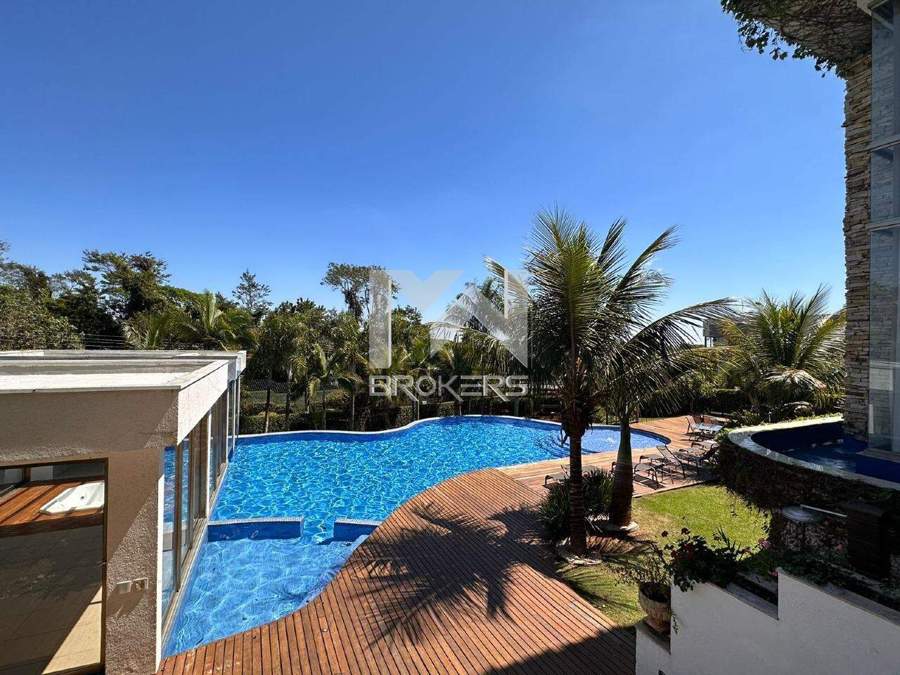 A casa oferece uma ampla sala com 4 ambientes, com um pé direito duplo que confere ainda mais grandiosidade ao espaço. Conta também com uma adega totalmente moderna e uma cozinha igualmente moderna, equipada com uma ilha central, além de um lavabo espaçoso. Ao todo, são 8 suítes, com a casa principal oferecendo 6 suítes incríveis, todas com armários e ar-condicionado, e que se abrem para uma varanda ampla com vistas deslumbrantes. Além disso, há mais 3 suítes destinadas a hóspedes, situadas na área externa, bem como um espaço dedicado a um ateliê.