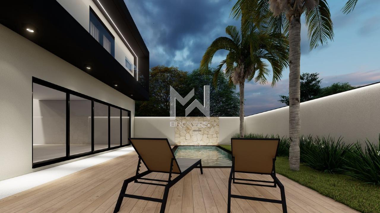 Na parte externa piscina aquecida com deck de porcelanato, banheiro de apoio e paisagismo.