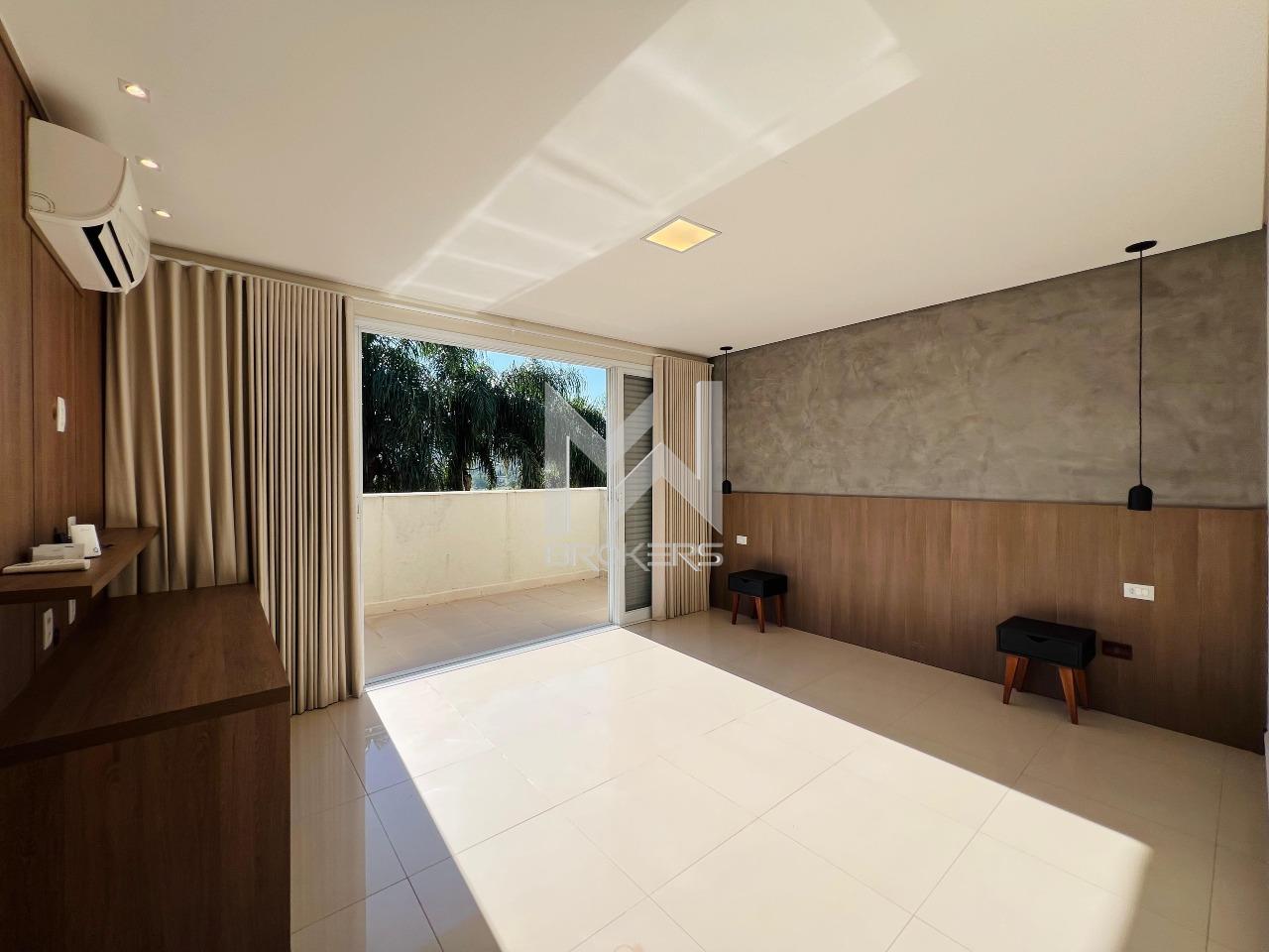 Casa em condomínio fechado, com três dormitórios, sendo três suítes com varanda — uma delas master com amplo closet e bela vista. Seus ambientes integrados conectam sala de TV, estar e jantar. A cozinha fica reservada e já possui torre quente com forno elétrico e microondas, além de cooktop e coifa. Possui também, despensa, dois depósitos: Interno e externo, lavanderia e acesso à garagem para prestador de serviço e descarga de compras.