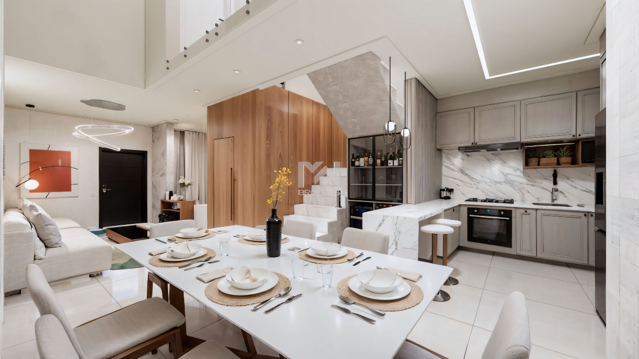 Design Moderno: Cada casa dispõe de 03 suítes, 03 salas, 05 banheiros, cozinha integrada, área gourmet completa e vagas para 02 carros. A integração dos ambientes proporciona um espaço agradável e perfeito para reunir a família e amigos.