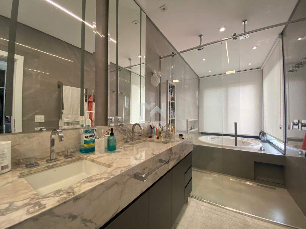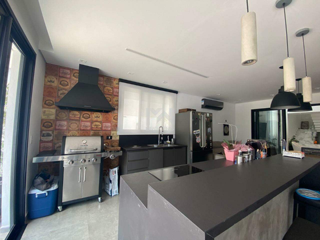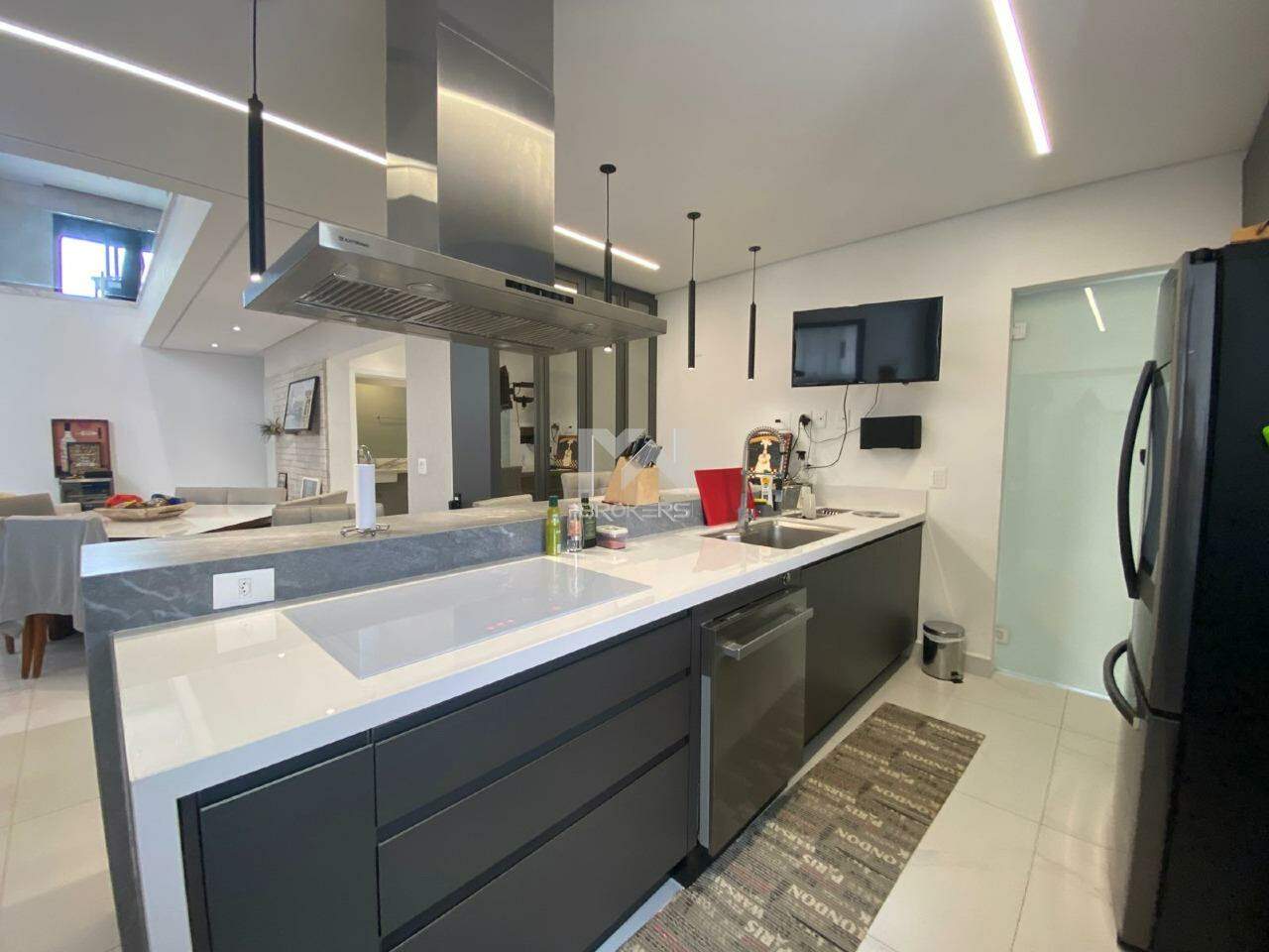 Cozinha e área gourmet com bancadas em lastras Portobello e pia em Dekton, materiais de altíssimo padrão, além de um triturador de alimentos de última geração.