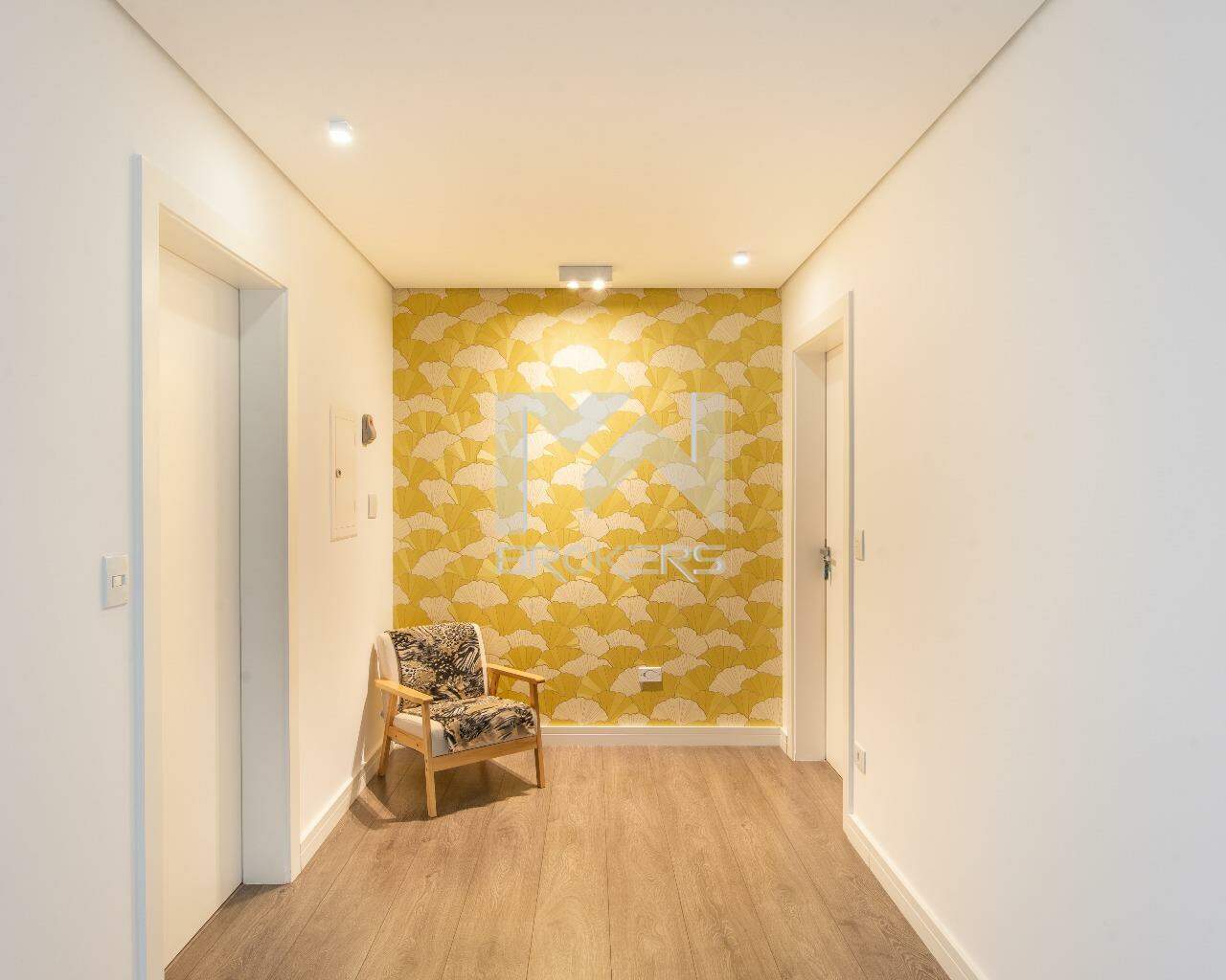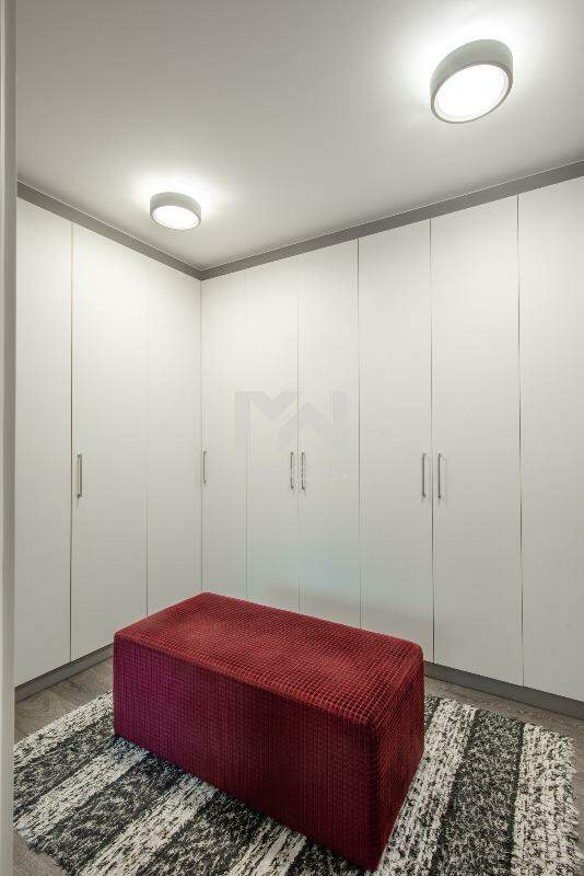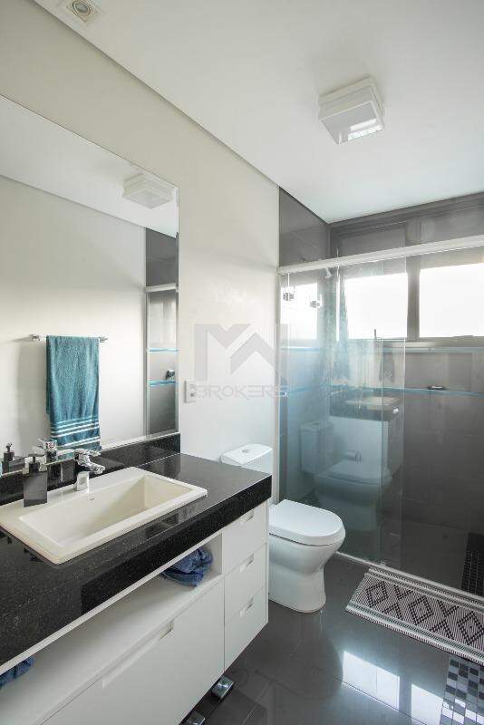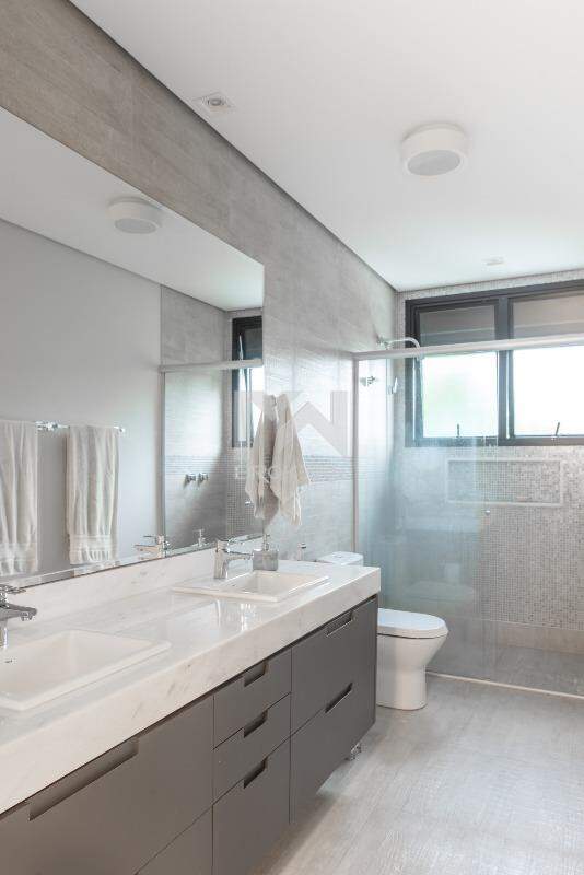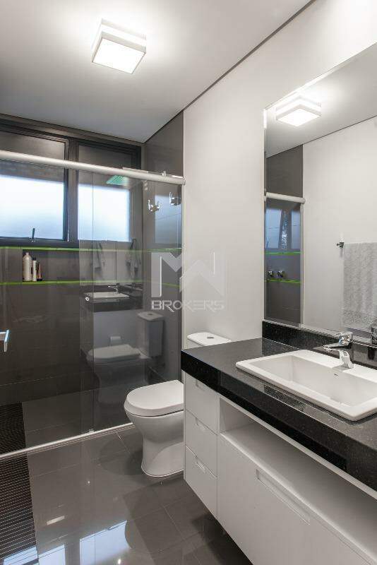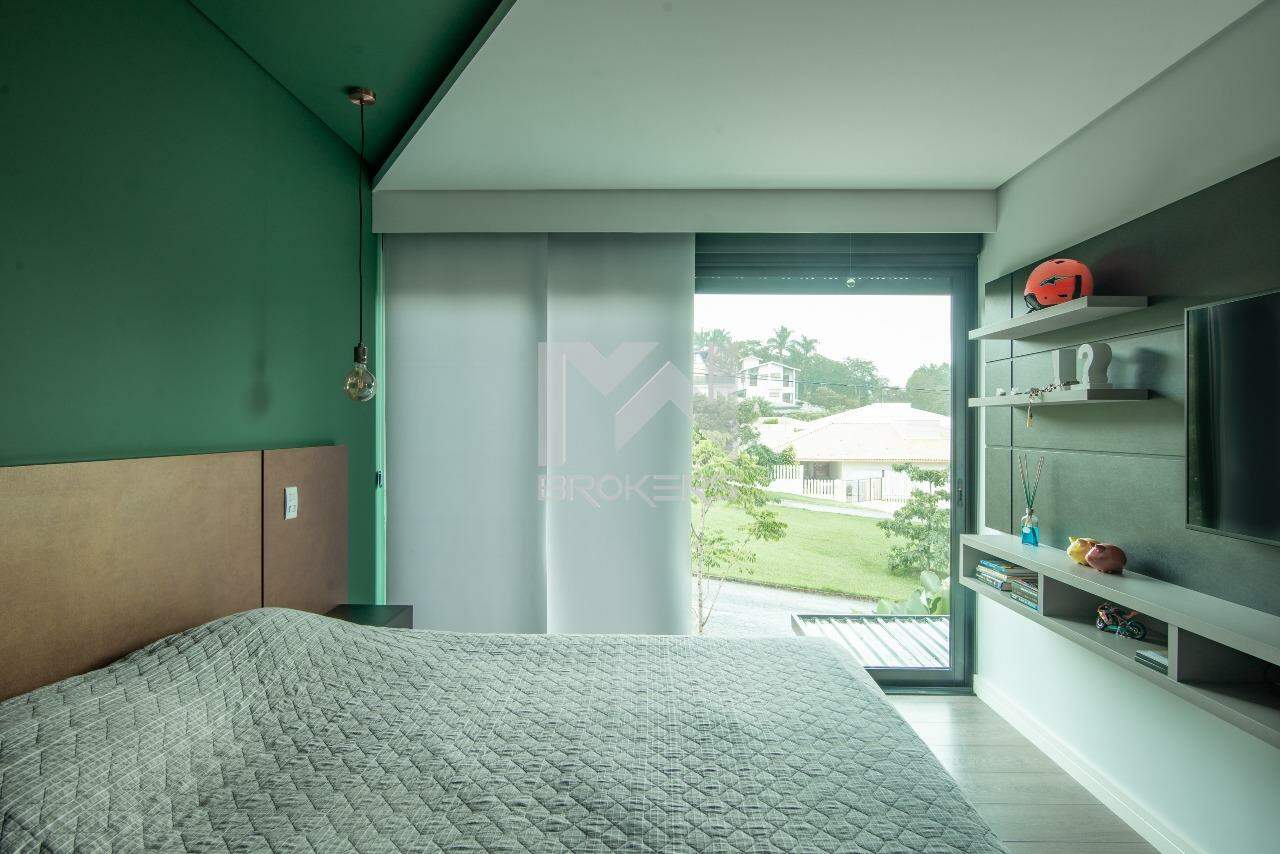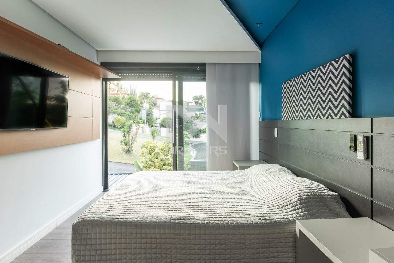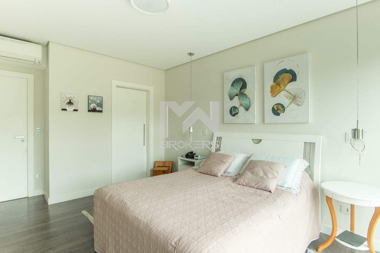No pavimento superior, área íntima com 04 dormitórios, todos suítes, com armários, persianas automatizadas e ar condicionado, sendo 01 master com closet.