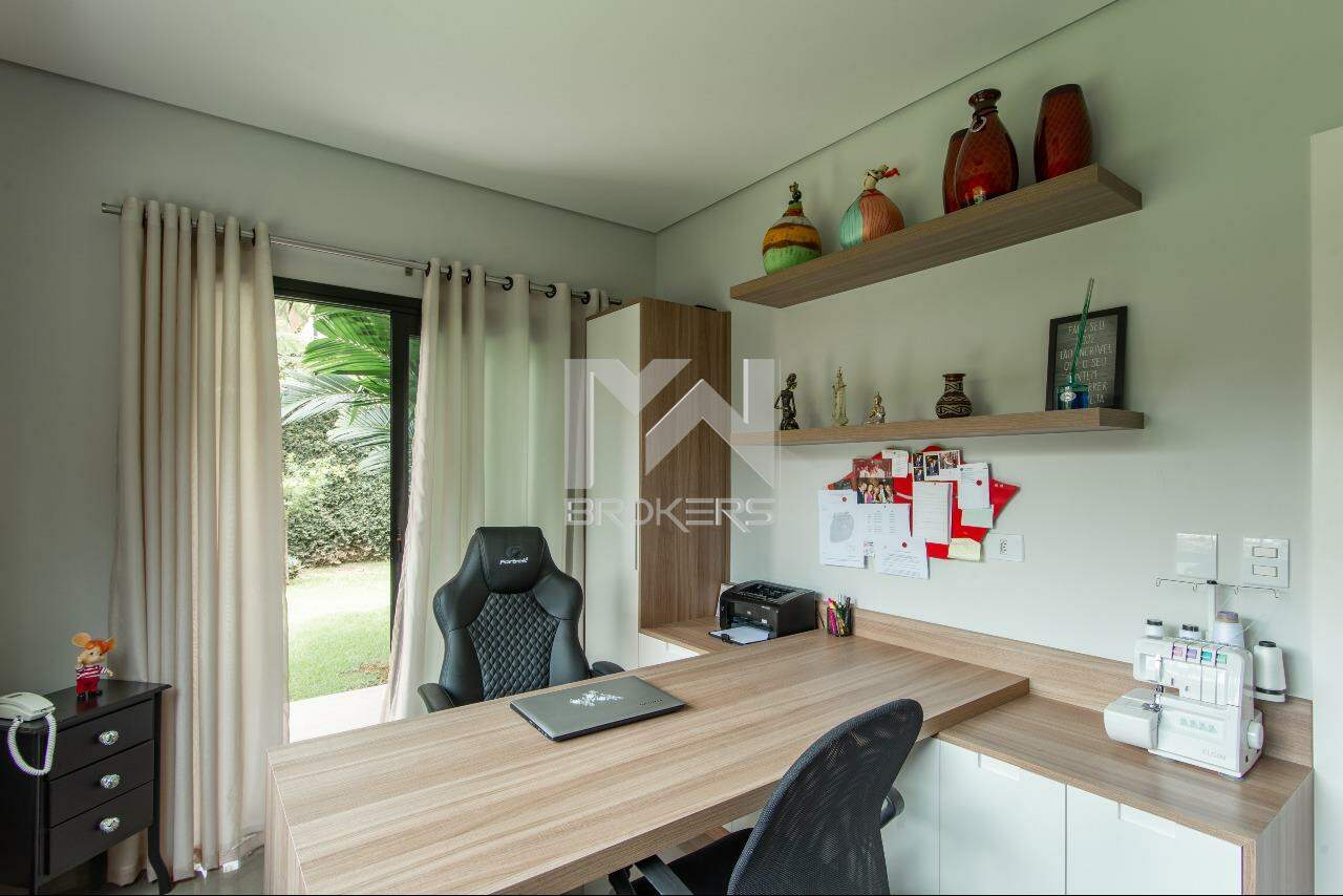 Sala ampla para 03 ambientes: estar, home e refeições; lavabo; escritório; cozinha com despensa; área de serviços com área externa, dependência de doméstica com entrada independente e depósito.