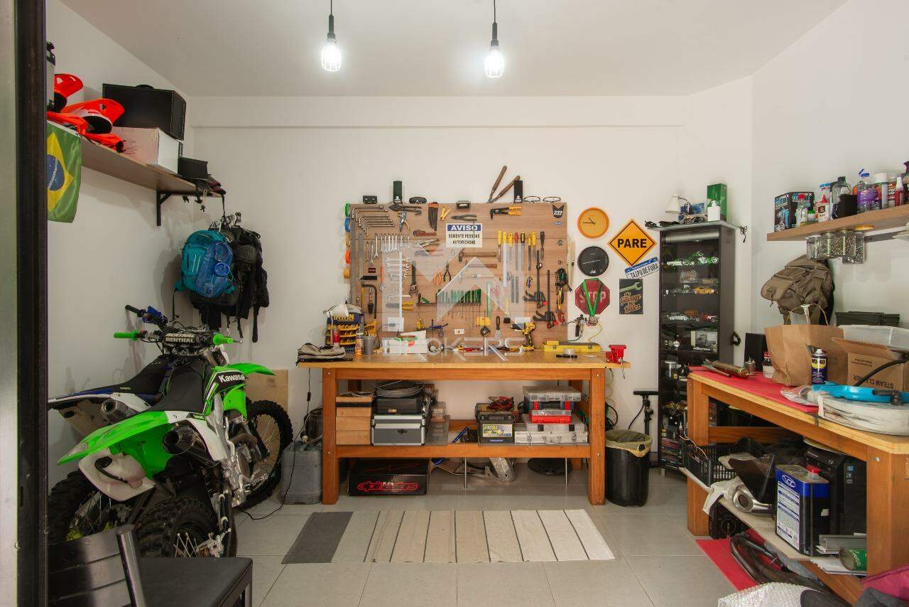 Garagem coberta para 04 veículos com oficina e banheiro.