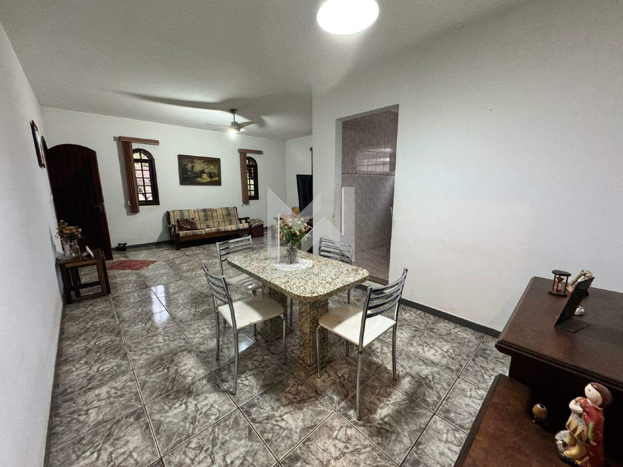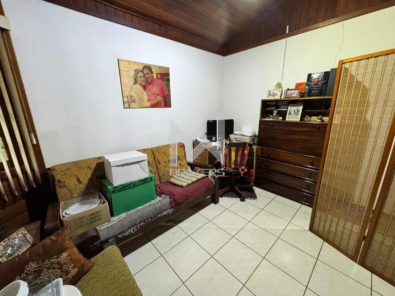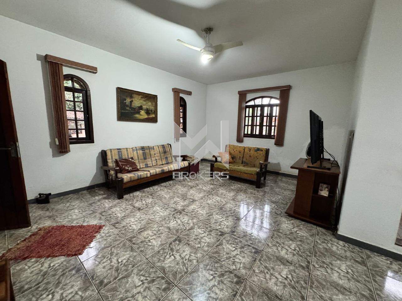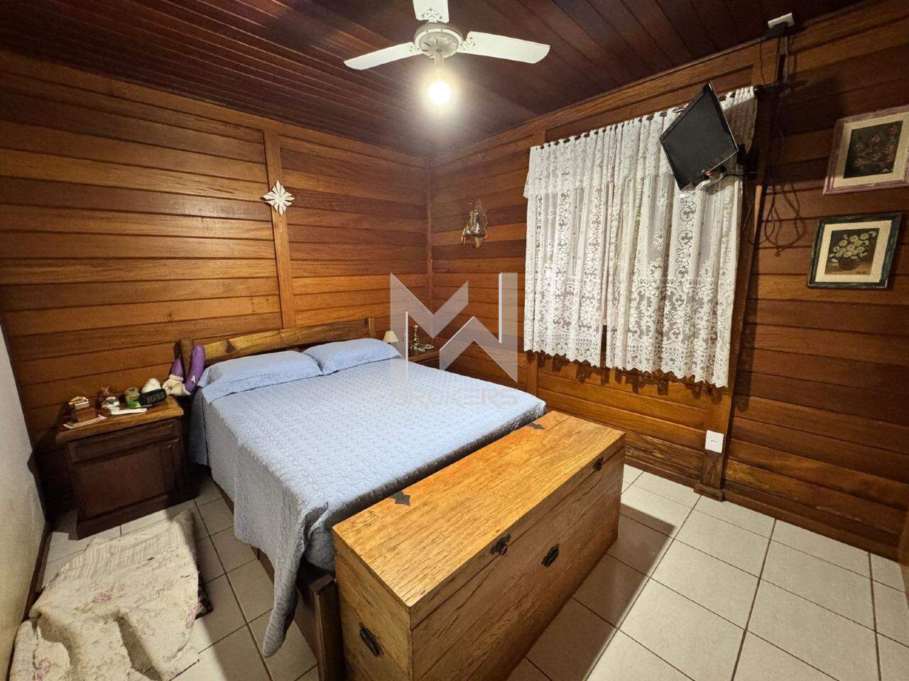 A casa principal, mista (alvenaria e madeira), possui sala de estar, sala de refeições, lavabo, cozinha e área íntima com 03 dormitórios, sendo uma suíte.
