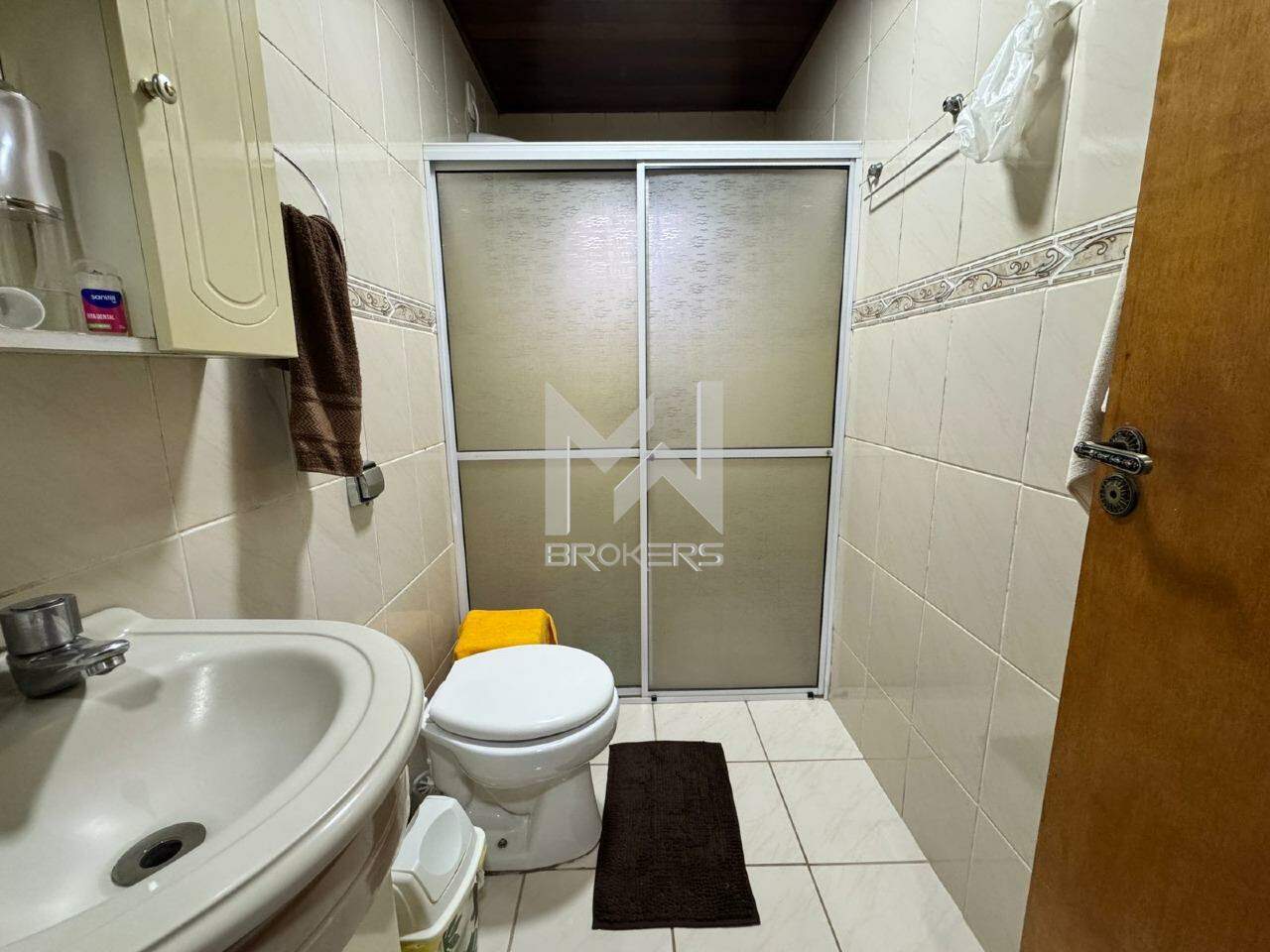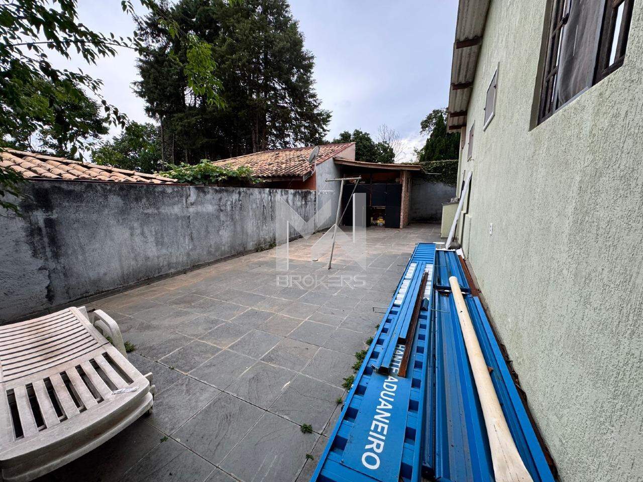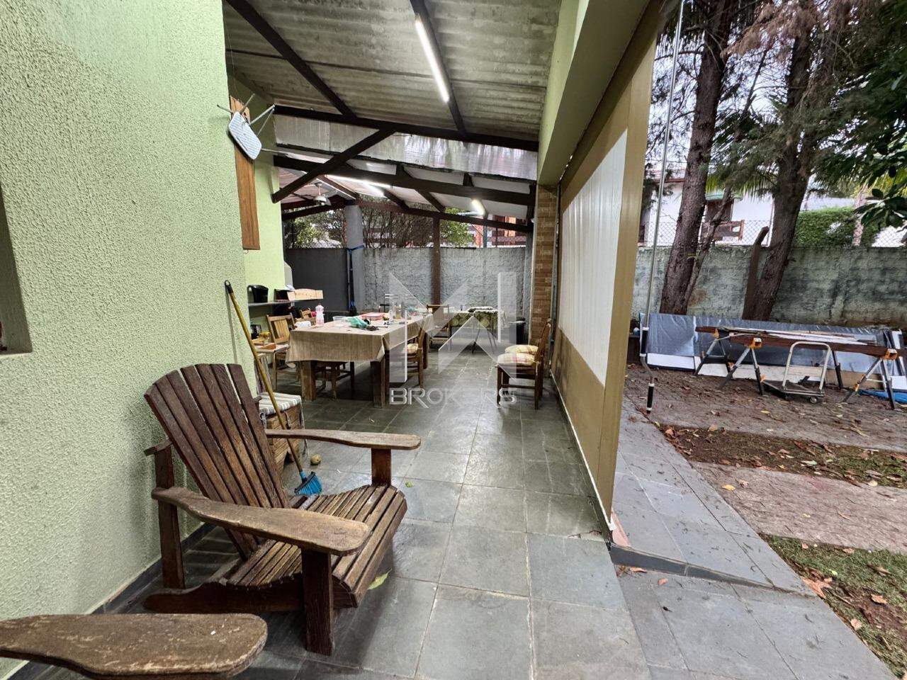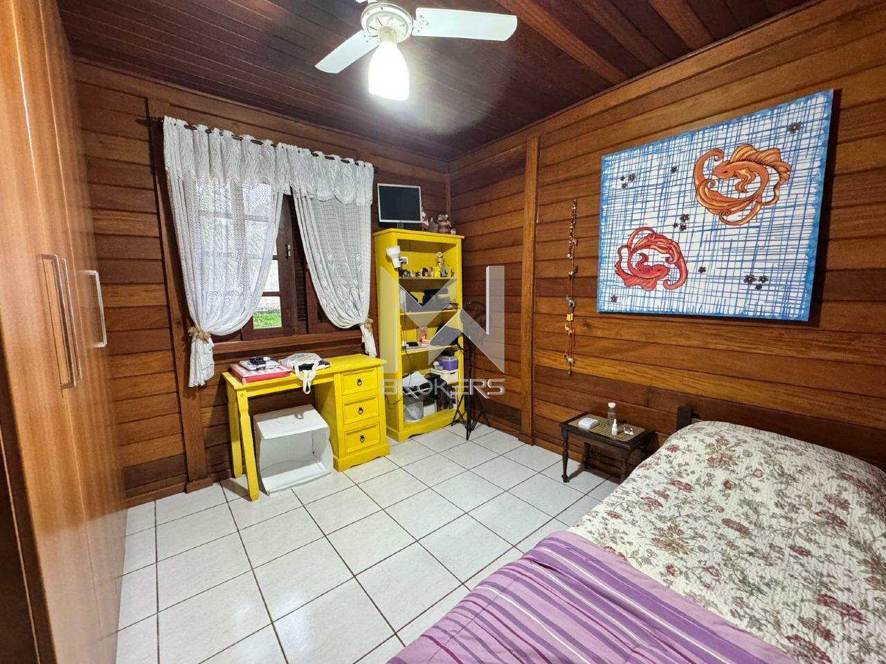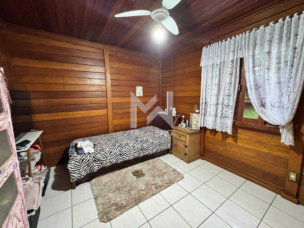 A casa principal, mista (alvenaria e madeira), possui sala de estar, sala de refeições, lavabo, cozinha e área íntima com 03 dormitórios, sendo uma suíte.