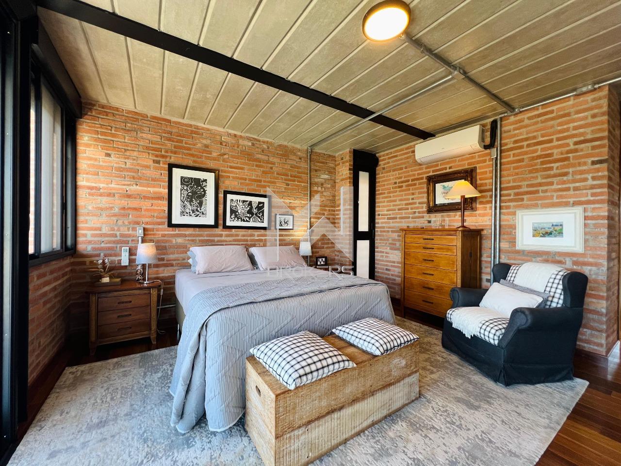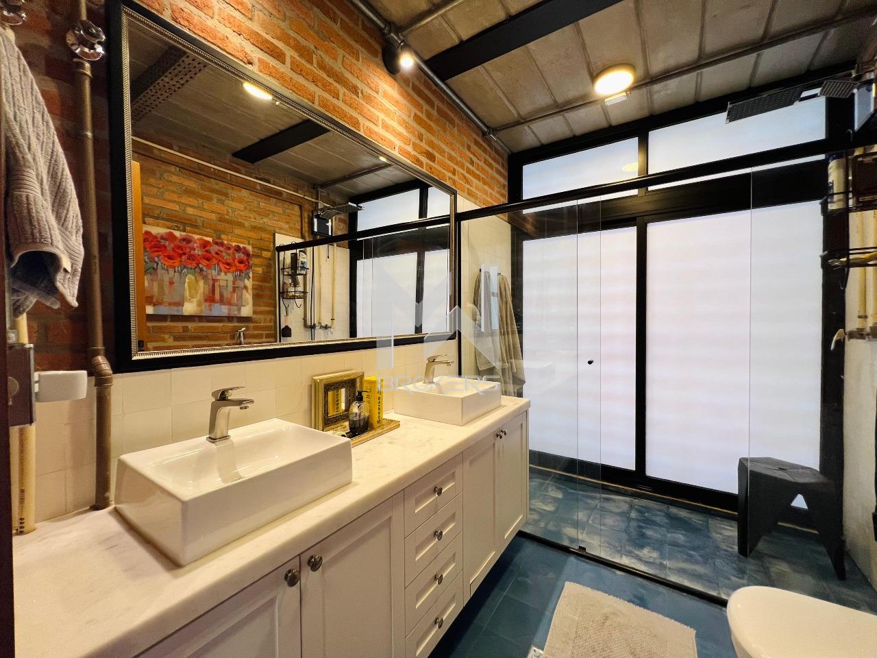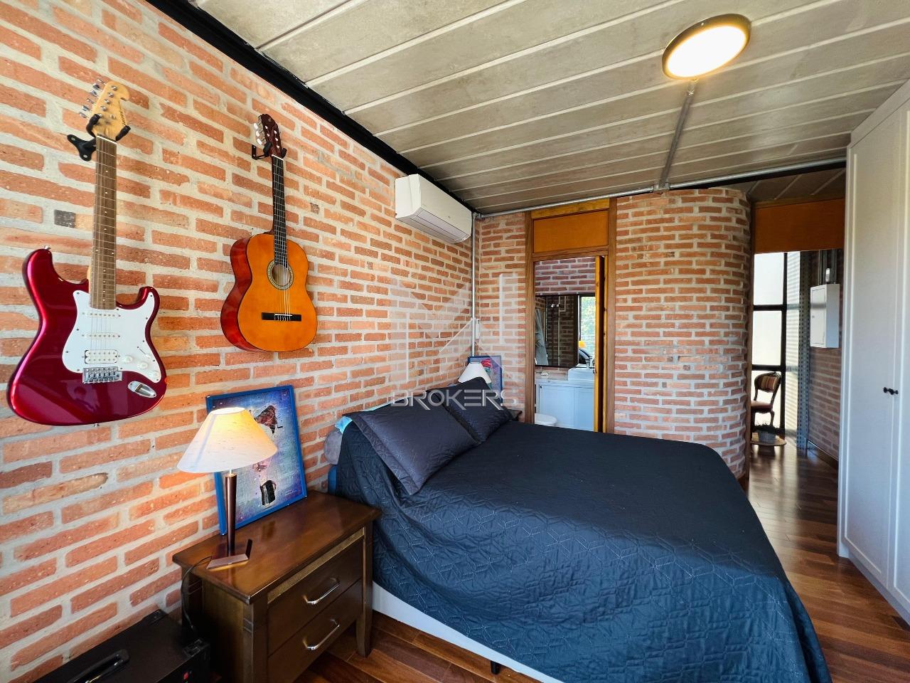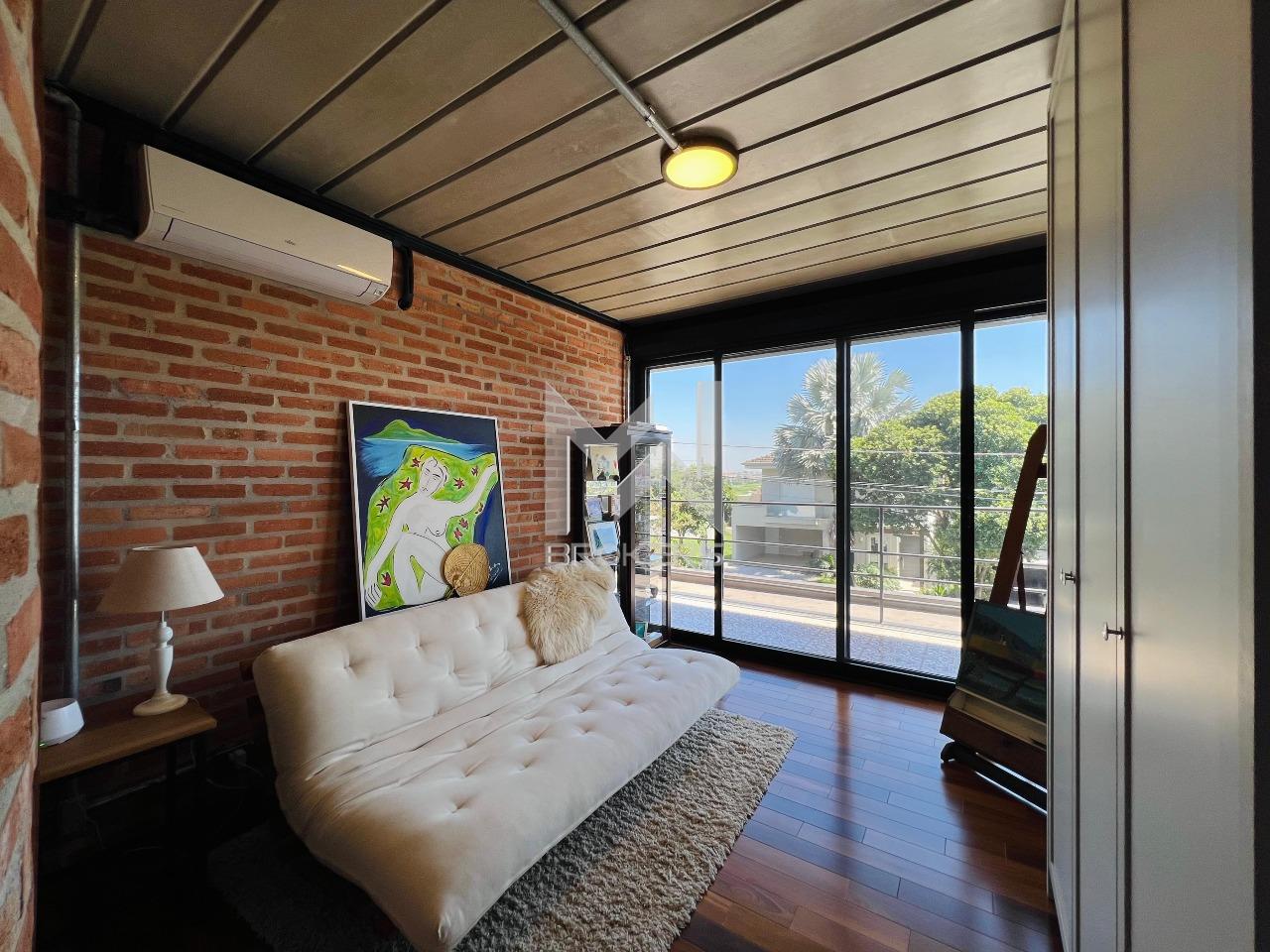 Casa moderna à venda no condomínio Fribourg no Swiss Park, com estrutura de aço, concreto aparente, tijolinho e vidro.