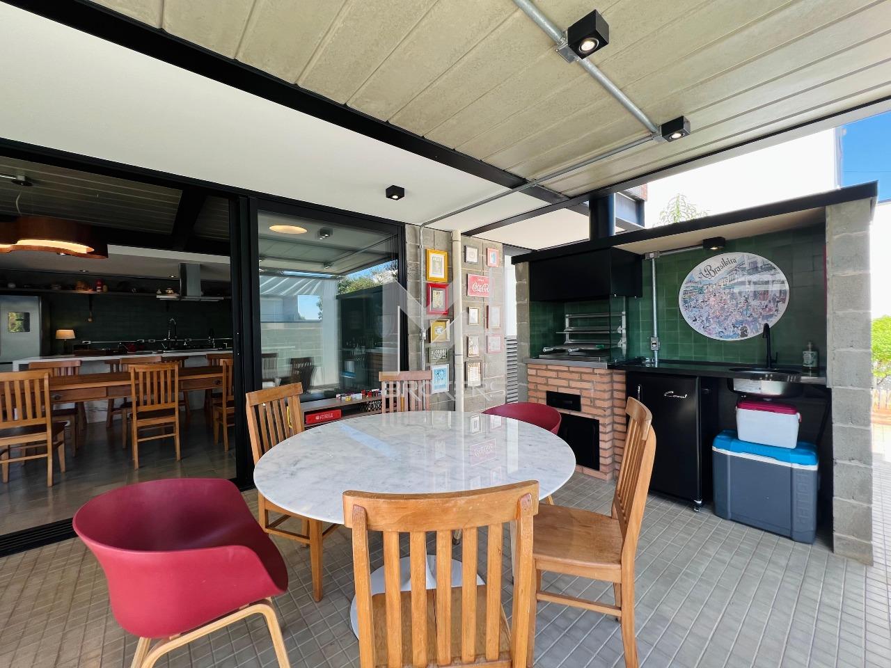 A casa toda é face Norte, foi construída a 2 anos, possui três dormitórios sendo todos suítes com varanda. Lavabo, escritório, salas de TV e jantar integradas a cozinha que possui ilha e está repleta de planejados. Ao lado temos o espaço gourmet com churrasqueira, piscina com aquecimento solar e a gás, com prainha e raia de 15 metros, banheiro externo, lavandaria e horta orgânica.
