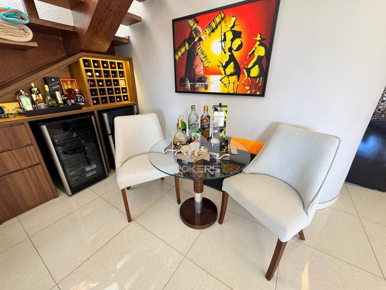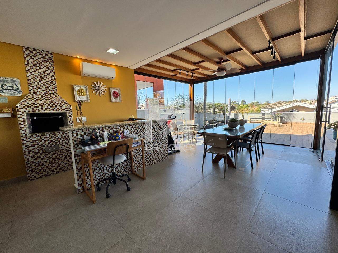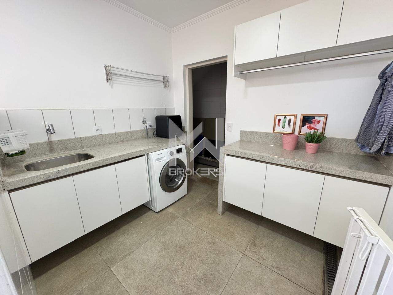 Sala de estar integrada à sala de refeições, lavabo, sala de TV com home theater embutido, adega, cozinha planejada com despensa. Área gourmet com fechamento em vidro.