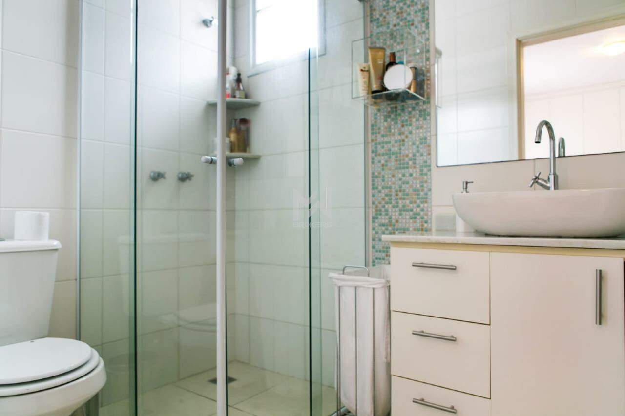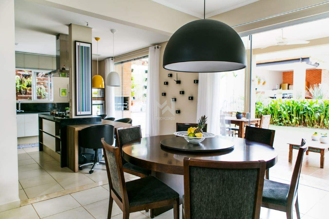 Sala de estar com pé direito duplo, sala de TV, sala de refeições e cozinha gourmet (com despensa), todas integradas. Além disso, dispõe de lavabo, escritório, área de serviços e dependência de doméstica.