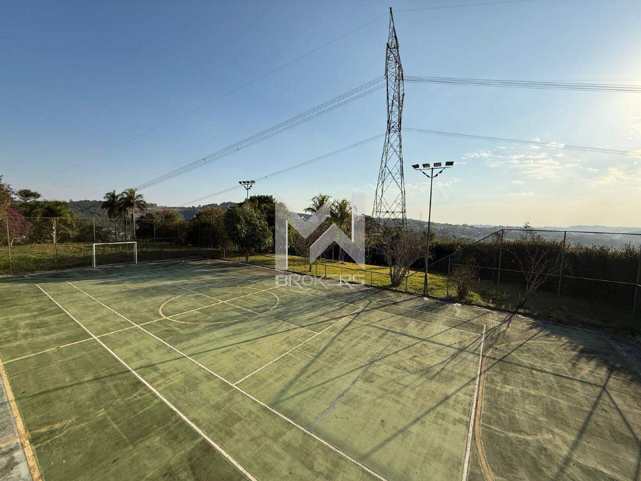 No andar inferior, adega, área gourmet com churrasqueira e fogão à lenha, piscina aquecida com trocador de calor, deck, hidro e prainha, piscina aquecida envidraçada, vestiário, sauna seca, caminho chinês com seixos e água para massagem nos pés com sistema de filtragem, banheiro, sala de ginástica, suíte de serviços, quadra poliesportiva, 02 canis, e 02 depósitos.