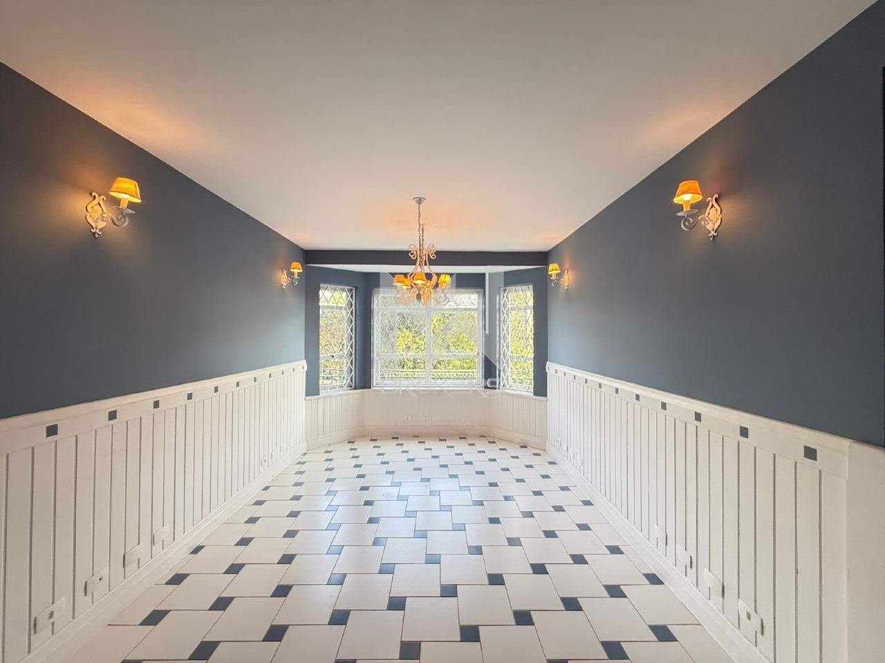 No pavimento superior, biblioteca, escritório, roupeiro e área íntima com 08 dormitórios sendo 01 suíte master com sala íntima com lareira e infra para mini cozinha, closet senhor e senhora e banheiro senhor e senhora, sendo esse último com hidro e vista panorâmica; 03 suítes com varanda, 04 dormitórios (sendo 01 reversível para suíte), banheiro social e banheiro com bancada dupla e banheira.