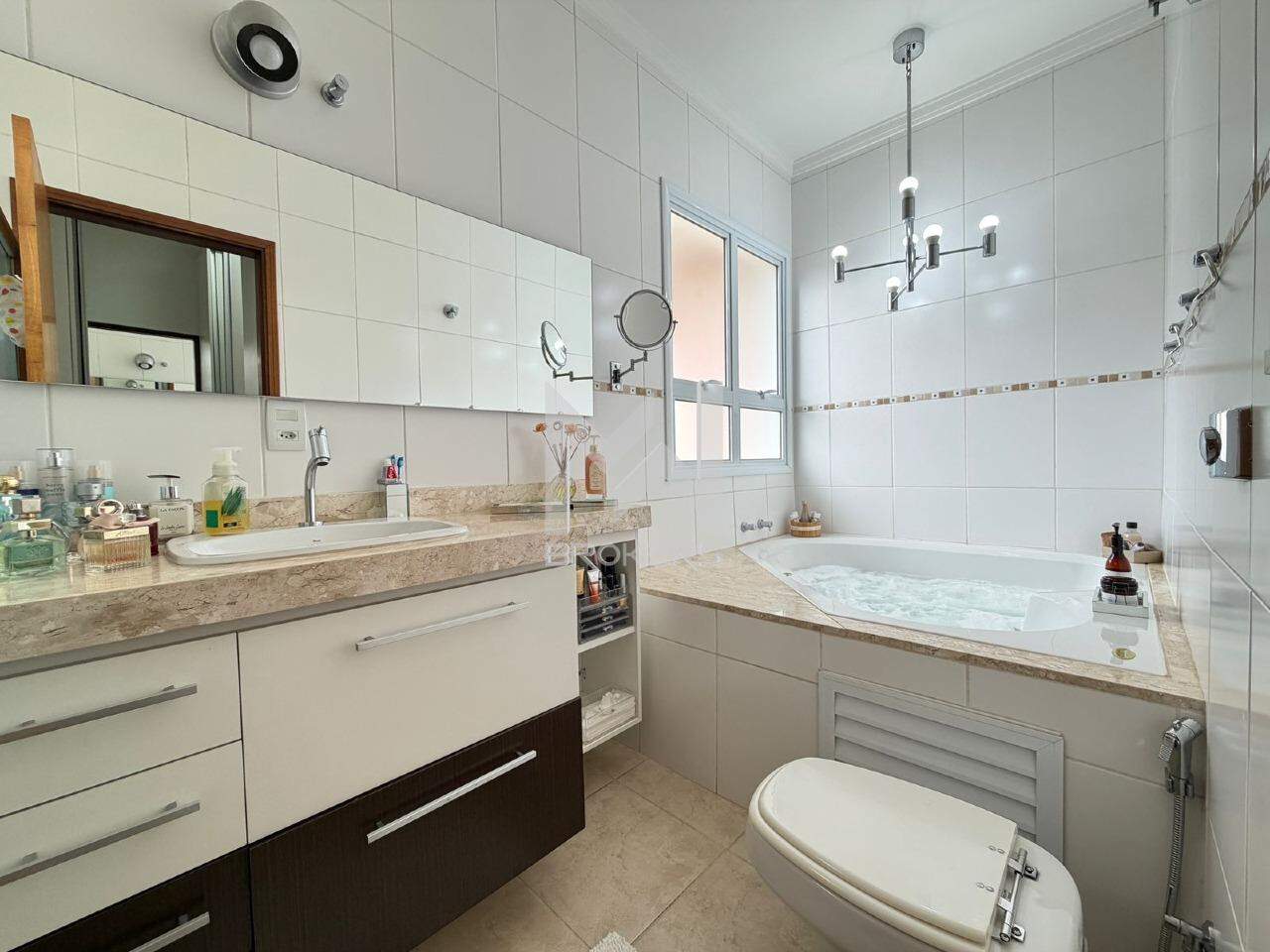 No pavimento superior, área íntima com 03 dormitórios, todos suítes, sendo uma master com closet e jacuzzi dupla.